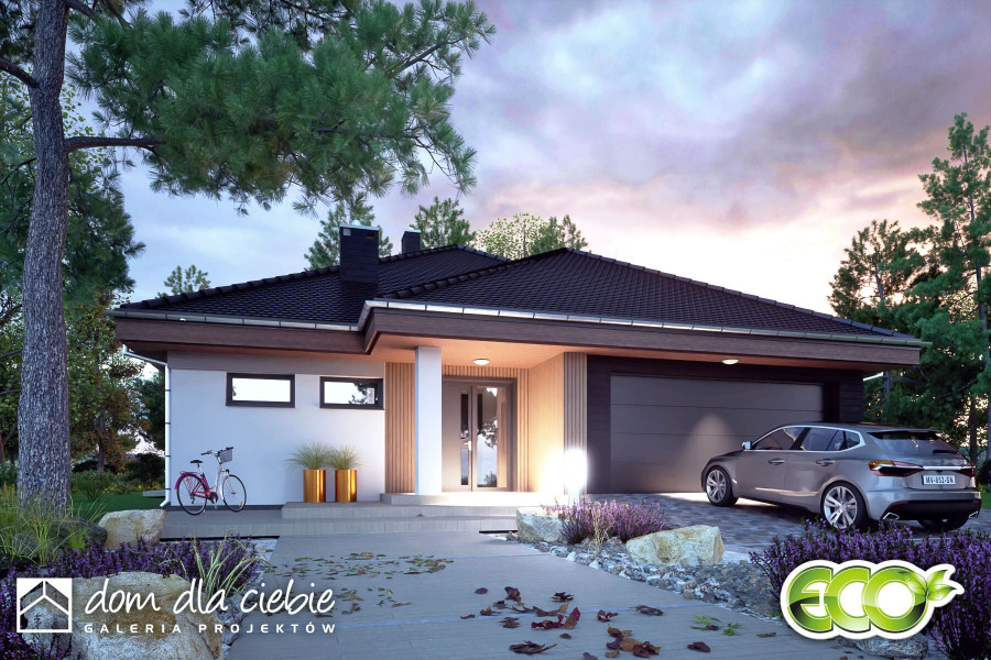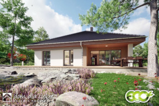 Melisa to propozycja optymalnego domu jednorodzinnego dla 3-4osobowej rodziny. Główna bryła Melisy jest założona na planie kwadratu przekryta regularnym dachem o kącie nachylenia 30 stopni z garażem dwustanowiskowym. Zadaszenie strefy wejściowej przed domem oraz dwustanowiskowy wysunęty garaż tworzą zgrabne zadaszenie wejścia. Dom ozdobiony jest detalami w naturalnych kolorach - jasnym drewnem i ciemnym klinkierem. W środku zaprojektowano trzy sypialnie umiejscowione od strony ogrodowej w głębi domu. Dwuosobowa sypialnia, zaprojektowana w centrum budynku, posiada indywidualną łazienkę. Z każda z sypialni można wyjść bezpośrednio na ogród. W strefie indywidualnej zaplanowano wspólną łazienkę z wanną. Przy kuchni otwartej na jadalnię i salon przewidziano wygodną spiżarnię. Z salonu można wyjść do strefy ogrodowej poprzez zadaszony taras. Z wiatrołapu można się dostać do garażu oraz do pomieszczenia technicznego z piecem CO. W holu mamy miejsce na garderobę niezwykle pomocną w utrzymaniu porządku. Obok przewidziano niewielki WC. Cały projekt zawiera wszystko co niezbędne dla wygodnego, rodzinnego życia, a duży salon z zadaszonym tarasem i kominkiem jest jego sercem.fundamenty: BETONOWE ściany zewnętrzne: POROTHERM+STYROPIAN TERMO ORGANIKA ściany wewnętrzne: POROTHERM rodzaj stropu: TERIVA elewacje: TYNK STRUKTURALNY, CEGŁA KLINKIEROWA pokrycie dachu: DACHÓWKA CERAMICZNA