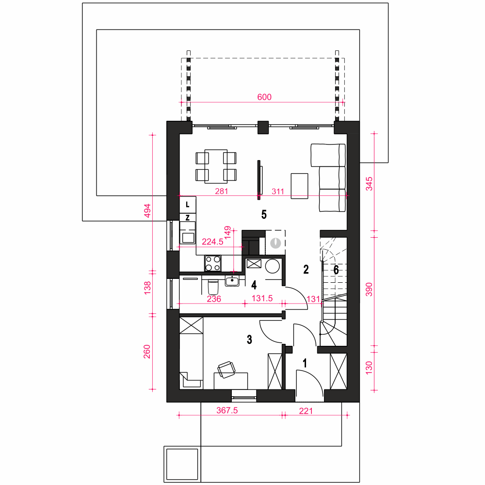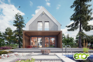 Iggi to projekt przeznaczony dla 3-4 osobowej rodziny.fundamenty: BETONOWE ściany zewnętrzne: POROTHERM+STYROPIAN TERMO ORGANIKA ściany wewnętrzne: POROTHERM rodzaj stropu: TERIVA elewacje: TYNK STRUKTURALNY, DREWNO pokrycie dachu: BLACHA