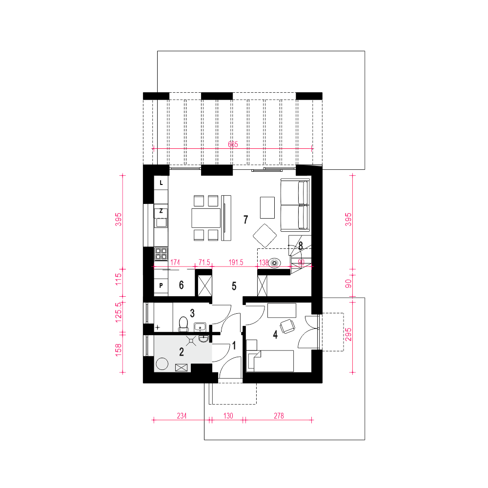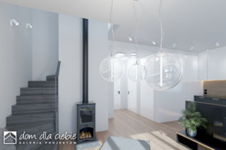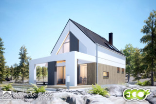 Amon II to projekt nowoczesnego domu typu stodoła, z poddaszem użytkowym. Projekt powstał jako wersja projektu Amon. Amon II posiada dodatkową sypialnie z garderobą, które przewidziano na poddaszu nad salonem. To projekt przewidziany dla osób poszukujących niewielkiego domu, spełniającego funkcję mieszkalną lub jako dom rekreacyjny. To atrakcyjny projekt domu o nowoczesnej, a przy tym prostej formie bryły, o dużych przeszkleniach, z nowoczesną pergolą ogrodową, z elewacją pokrytą tynkiem i okładziną drewnianą oraz dachem pokrytymi blachą. Na funkcję budynku składa się parter, gdzie przewidziano wygodny salon z wyjściem na obszerny taras z nowoczesną pergolą, kuchnię z jadalnią, pokój sypialny, wydzieloną toaletę oraz poddasze z antresolą, trzema sypialniami (w tym jedną z garderobą) i łazienką. Dom idealnie wpisze się w każdy krajobraz, ale dzięki kolorystyce i materiałom zastosowanym na elewacji będzie się idealnie komponował w otoczeniu natury. Dzięki zastosowanym rozwiązaniom energooszczędnym w tym odpowiedniej grubości izolacji termicznej oraz dzięki ciepłemu montażowi stolarki, dom powinien być ekonomiczny w użytkowaniu.fundamenty: BETONOWE ściany zewnętrzne: POROTHERM+STYROPIAN TERMO ORGANIKA rodzaj stropu: ŻELBETOWY elewacje: TYNK/OKŁADZINA DREWNIANA pokrycie dachu: BLACHA