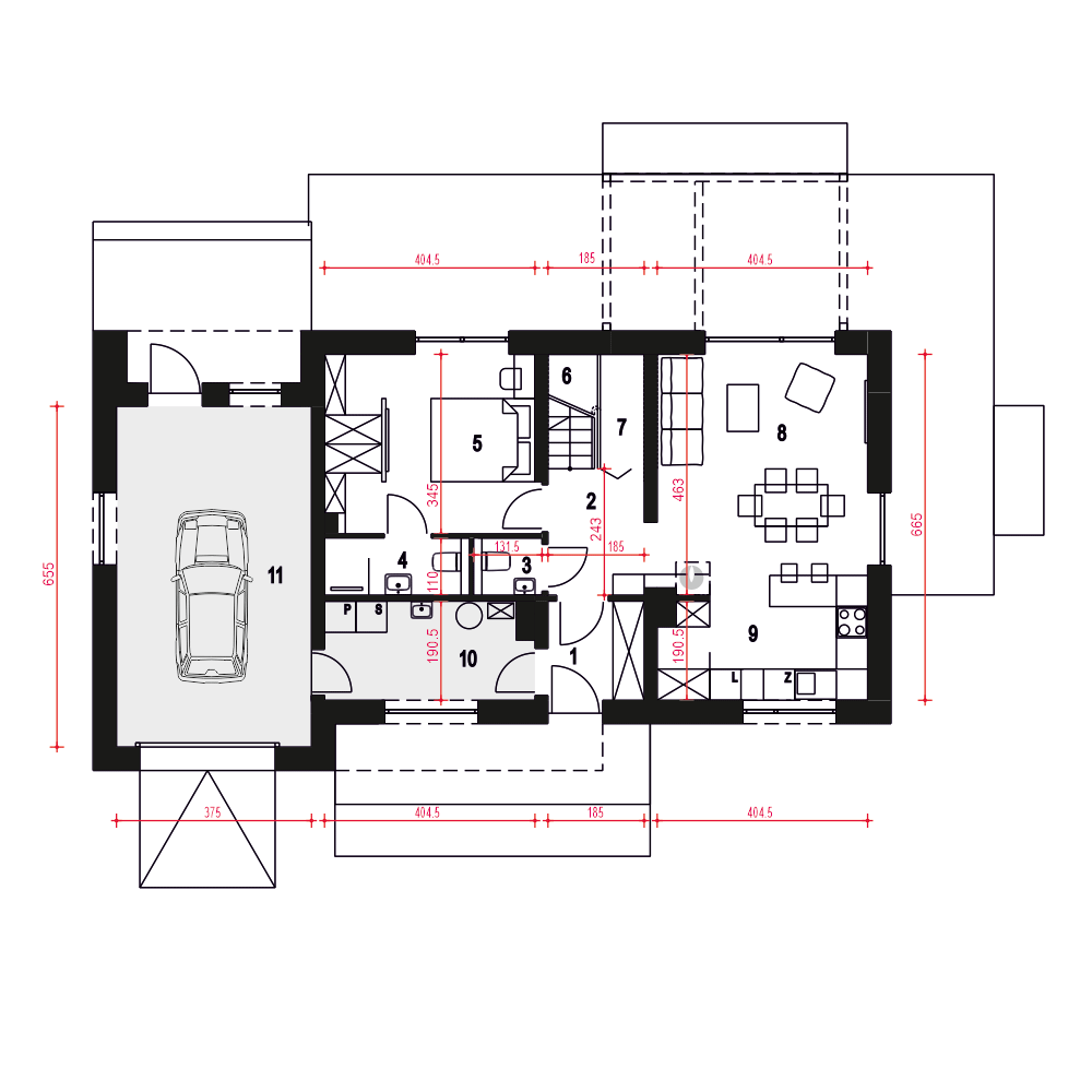 Projekt Werbena jest idealną propozycją niedużego ekonomicznego domu z garażem dla dużej 5-6 os rodziny.fundamenty: BETONOWE ściany zewnętrzne: POROTHERM+STYROPIAN TERMO ORGANIKA ściany wewnętrzne: POROTHERM rodzaj stropu: TERIVA elewacje: TYNK STRUKTURALNY, CEGŁA KLINKIEROWA pokrycie dachu: DACHÓWKA CERAMICZNA