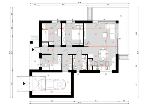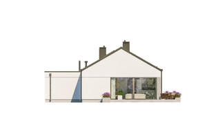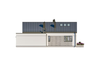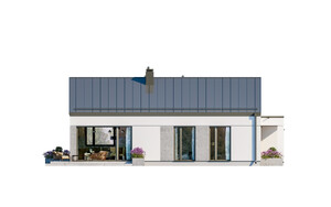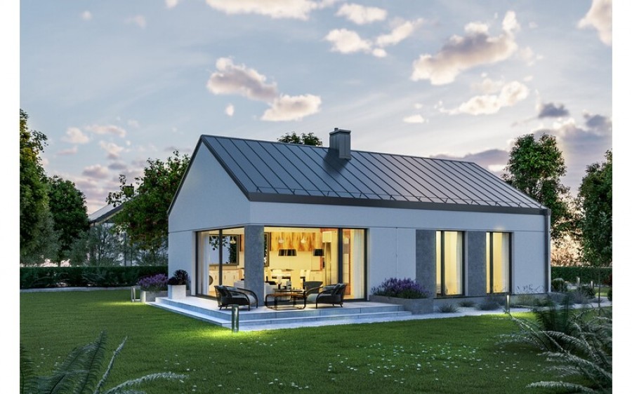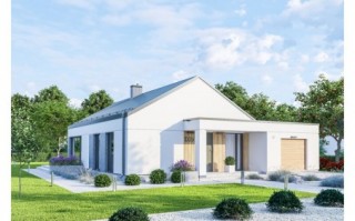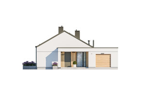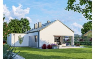 Parter składa się z holu wejściowego, pokoju dziennego , trzech pokoi sypialnych, kuchni, łazienki, pomieszczenia technicznego oraz garażu . Uwagę przykuwa otwarcie stropu nad salonem gdzie umieszczono okna połaciowe doświetlające kuchnię wraz z salonem.