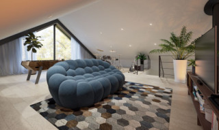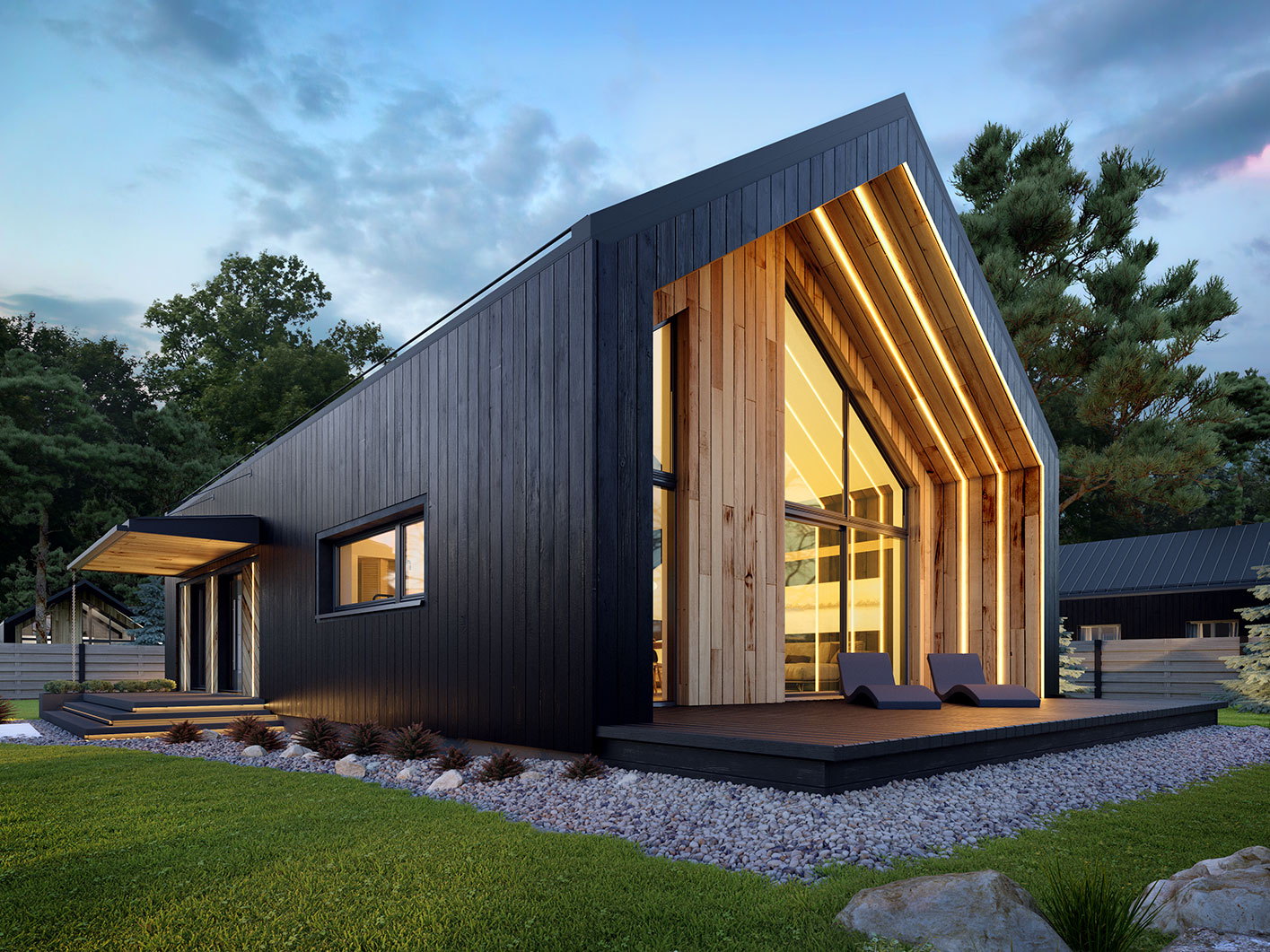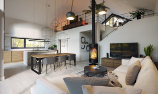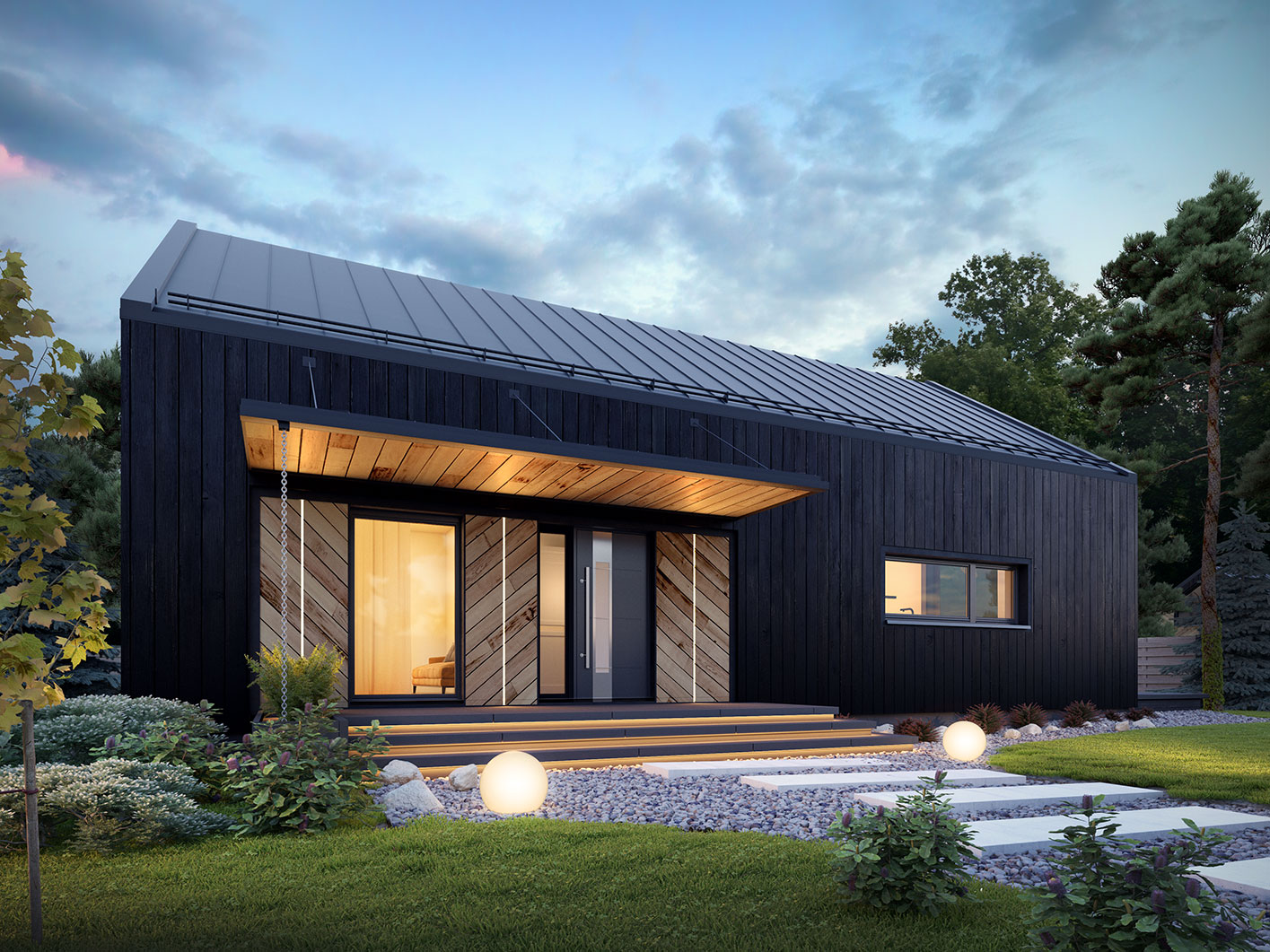 Projekt Hana 6 to dom w stylu nowoczesnej stodoły. Bezokapowa bryła postawiona jest na planie prostokąta. Duże przeszklenia i otwarta przestrzeń salonu nadają nowoczesnego charakteru. Dom spełnia program użytkowy w parterze (86,38 m2) a antresola (34 m2) jest dodatkową powierzchnią, niewliczoną do powierzchni użytkowej, która może być zaadaptowana jako mieszkalna lub zabudowana w formie strychu. Dom Hana 6 jest prosty i funkcjonalny a wnętrze pozwala na wiele sposobów aranżacji. Standardowo dom wyposażony jest w rekuperację oraz pompę ciepła.