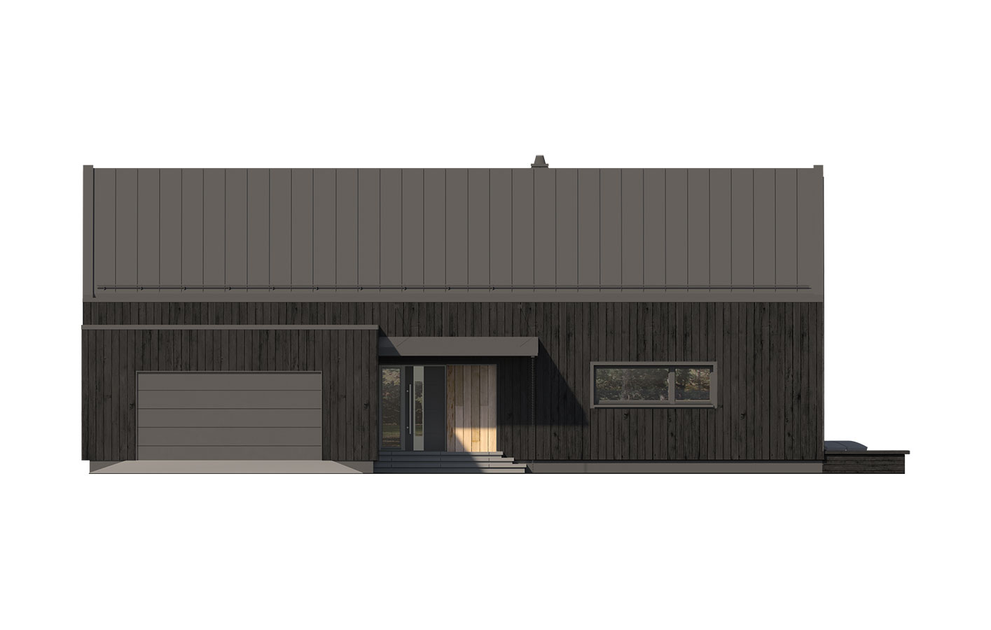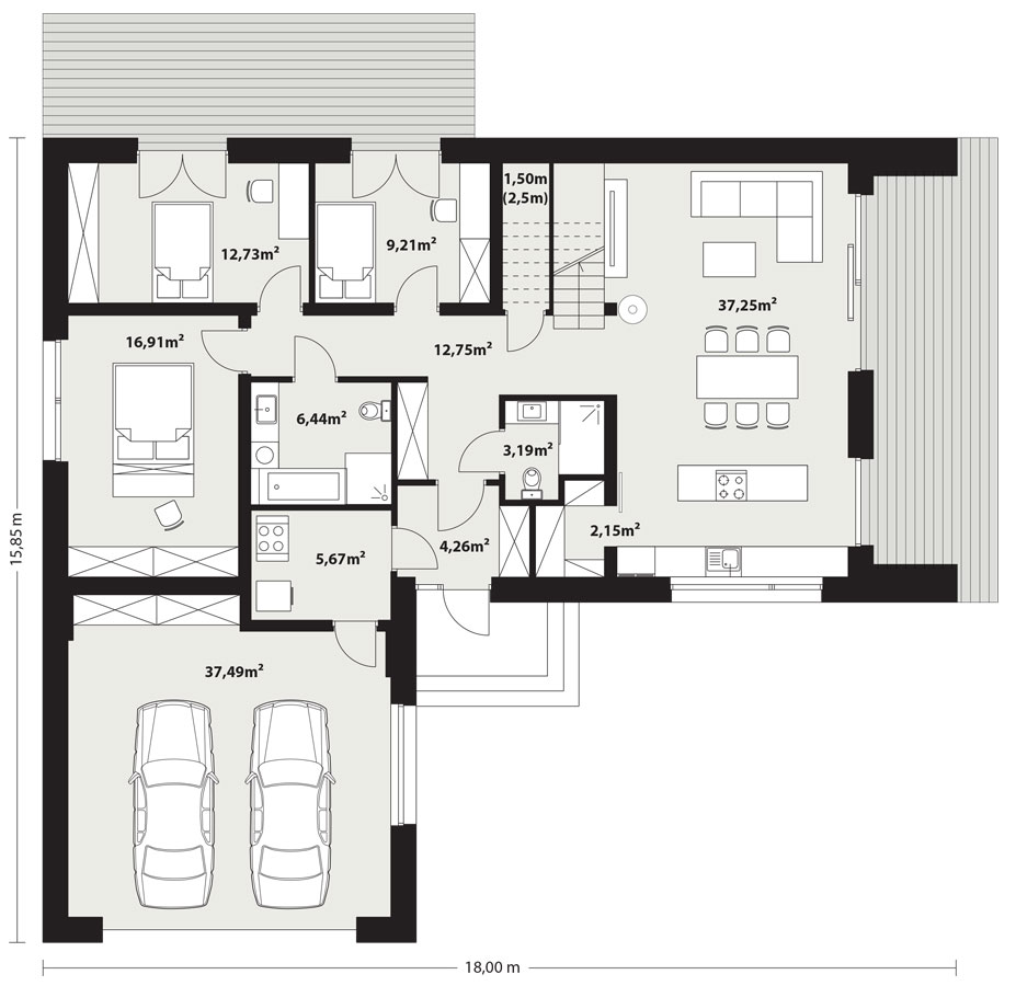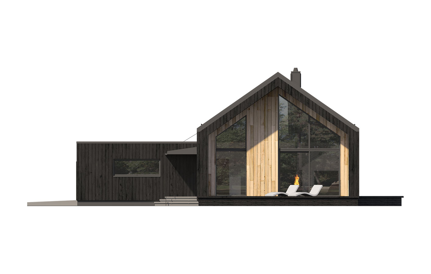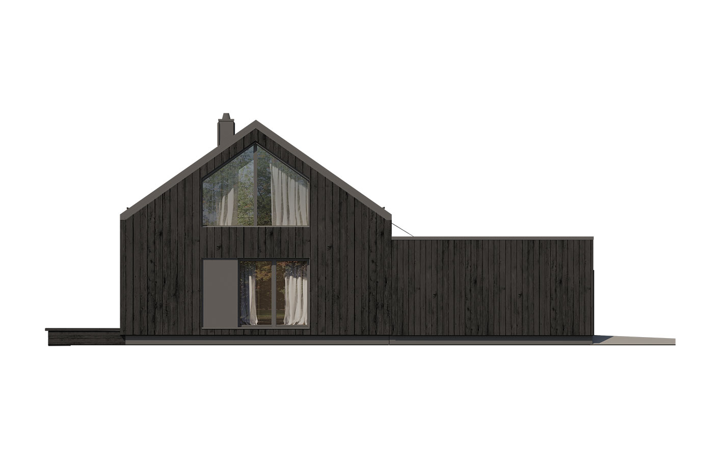 Projekt Hana 4 to dom w stylu nowoczesnej stodoły. Bezokapowa bryła postawiona jest na planie litery "L". Duże przeszklenia i otwarta przestrzeń salonu nadają nowoczesnego charakteru. Dom spełnia program użytkowy w parterze (112,06 m2) a antresola (49,39 m2) jest dodatkową powierzchnią, niewliczoną do powierzchni użytkowej, która może być zaadaptowana jako mieszkalna lub zabudowana w formie strychu. Dom Hana 4 jest prosty i funkcjonalny a wnętrze pozwala na wiele sposobów aranżacji. Standardowo dom wyposażony jest w rekuperację oraz pompę ciepła.