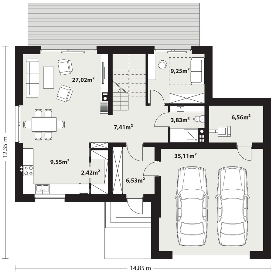 Nemini 3 to jednorodzinny budynek mieszkalny, parterowy z użytkowym poddaszem. Projekt charakteryzuje się prostą bryłą z dwuspadowym dachem, co czyni go niedrogim w budowie i tanim w eksploatacji. Czarny tynk na elewacji został urozmaicony ciemną płytką elewacyjną imitującą cegłę. Grafitowa płaska dachówka, szklane balustrady nadają budynkowi nowoczesnego charakteru. Ergonomicznie zaprojektowana i wyraźnie podzielona przestrzeń mieszkalna składa się ze strefy dziennej, nocnej i gospodarczej. Najbardziej reprezentacyjna część domu, to przestronny salon połączony z jadalnią, który otwiera się na duży taras oraz kuchnia ze spiżarnią. Oprócz części dziennej przewidziano na parterze dodatkowy pokój, który można wykorzystać na gabinet lub kolejną sypialnię. Na poddaszu przewidziano 3 sypialnie, łazienkę i pralnię. Największa sypialnia ma dodatkowo własną łazienkę i garderobę. Dużą kotłownię na każdy rodzaj paliwa i dwustanowiskowy garaż zlokalizowano w części gospodarczej domu.