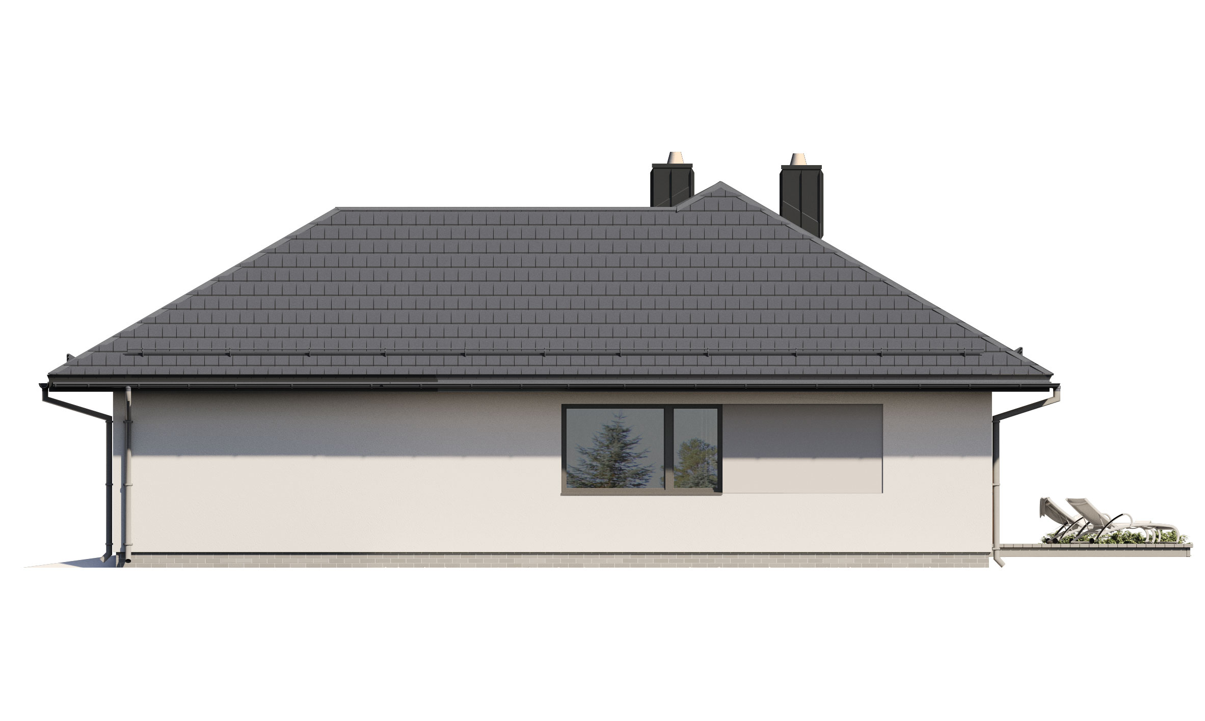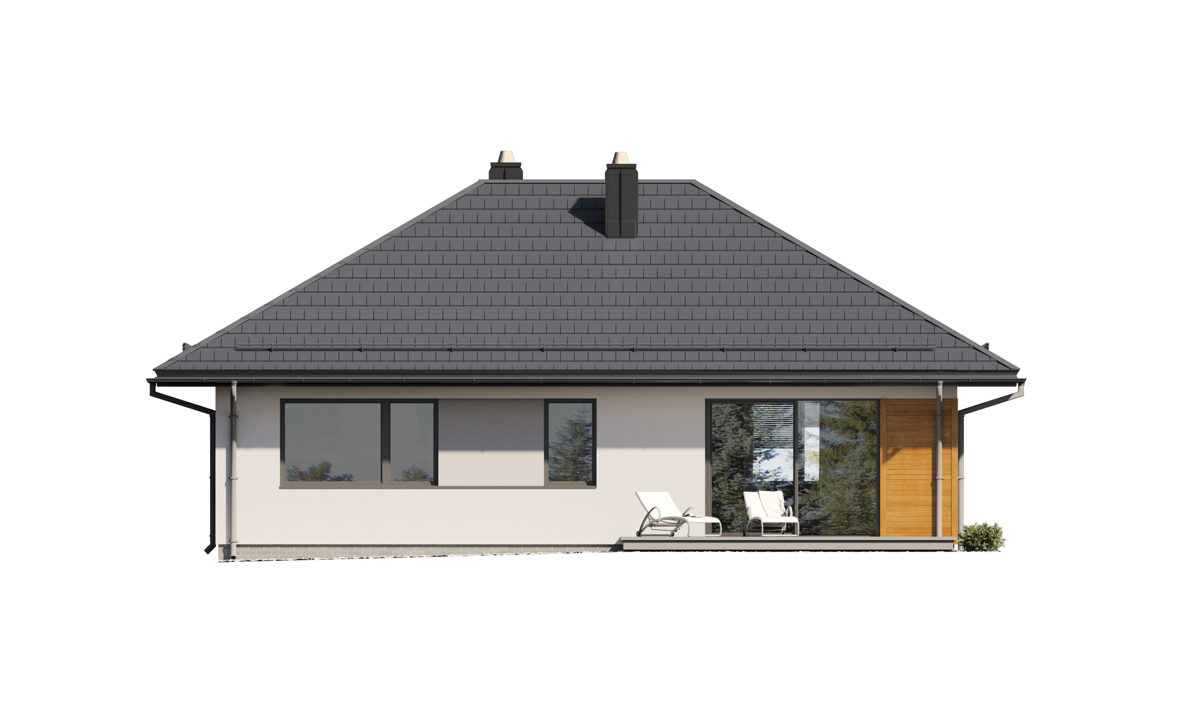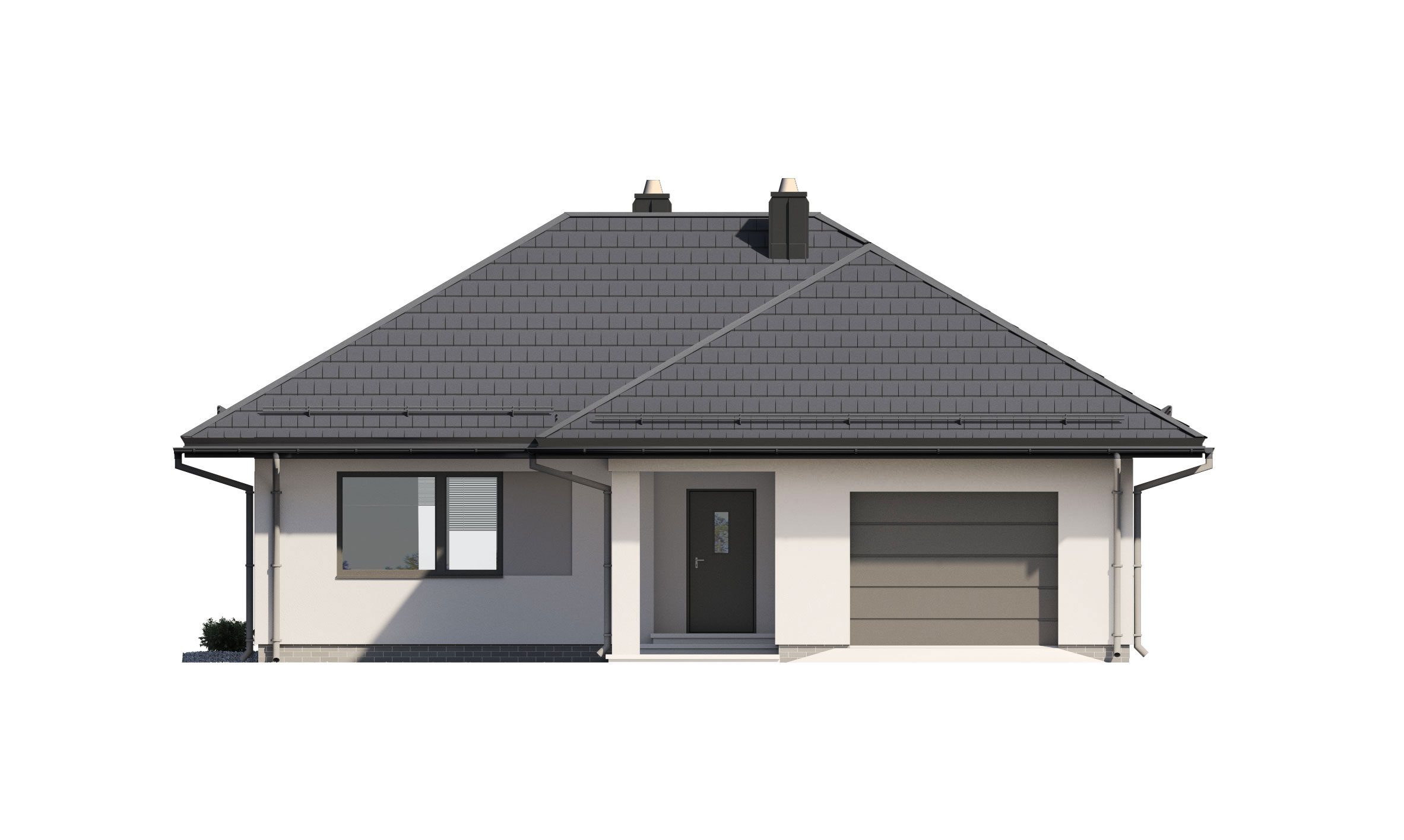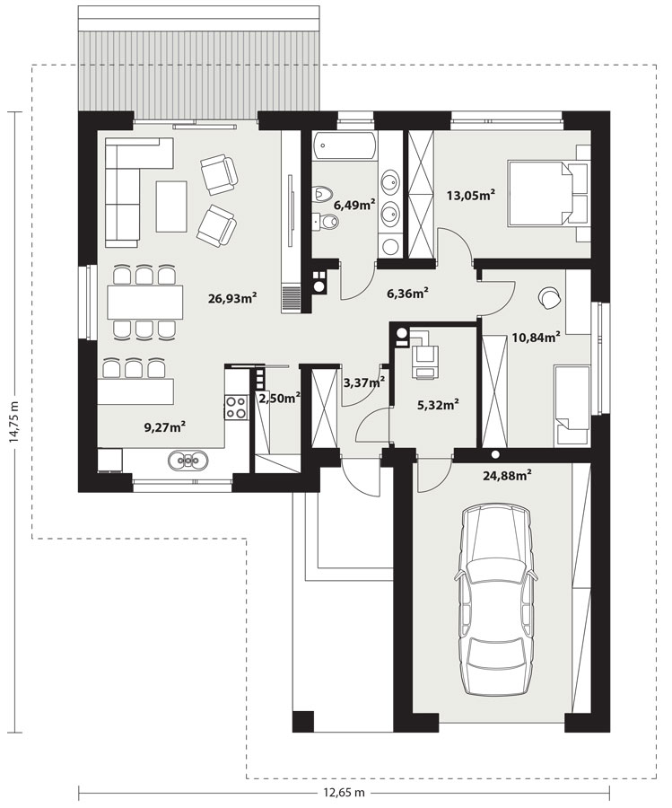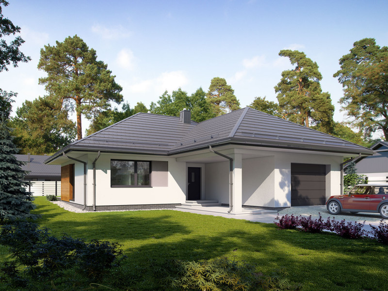 Lori 2 to niewielki, ale funkcjonalny dom parterowy, niepodpiwniczony z pojedynczym garażem. Powierzchnia użytkowa domu to 84m2 + garaż ujęte w optymalny układ pomieszczeń, zapewniający komfort 4-osobowej rodzinie. Część dzienna to otwarta i połączona przestrzeń salonu, jadalni i kuchni, która dzięki dużym przeszkleniom otwiera się na taras i otaczający ogród. W strefie nocnej zaprojektowano 2 sypialnie oraz łazienkę. Atutem projektu jest jego część gospodarcza: pomieszczenie gospodarcze, mogące pełnić funkcję, garderoby bądź spiżarni, duża kotłownia na każdy rodzaj paliwa oraz szeroki garaż, który w części można wykorzystać na składzik. Prosta bryła budynku, stanowiąca ogromną zaletę tego projektu, pozwala nie tylko na szybszą budowę domu, ale także zapewnia tańsze utrzymanie i eksploatację obiektu. Dom dzięki swojej harmonii, prostocie i elegancji idealnie wpisuje się zarówno w klimat miejski, jak i podmiejski czy wiejski.
