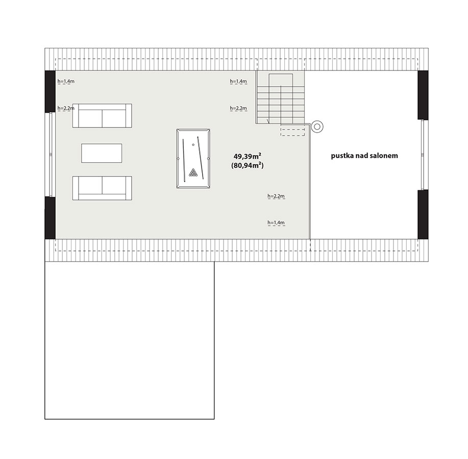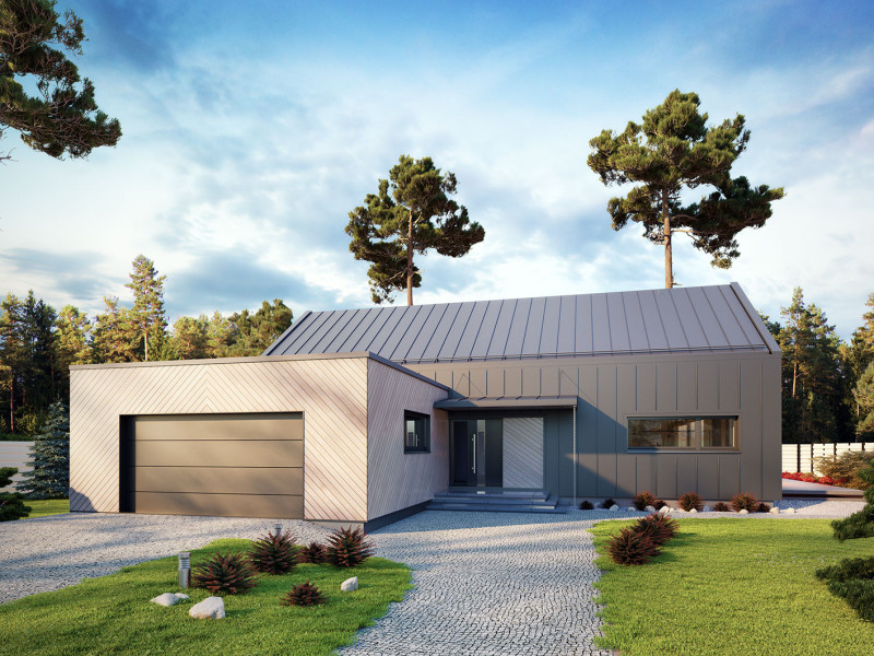 Projekt Hana 2 to dom w stylu nowoczesnej stodoły z garażem dwustanowiskowym. Bezokapowa bryła postawiona jest na planie litery "L". Duże przeszklenia i otwarta przestrzeń salonu nadają nowoczesnego charakteru. Dom spełnia program użytkowy w parterze (112,14 m2) a antresola (49,39 m2) jest dodatkową powierzchnią, niewliczoną do powierzchni użytkowej, która może być zaadaptowana jako mieszkalna lub zabudowana w formie strychu. Dom Hana 2 jest prosty i funkcjonalny a wnętrze pozwala na wiele sposobów aranżacji. Standardowo dom wyposażony jest w rekuperację oraz pompę ciepła.