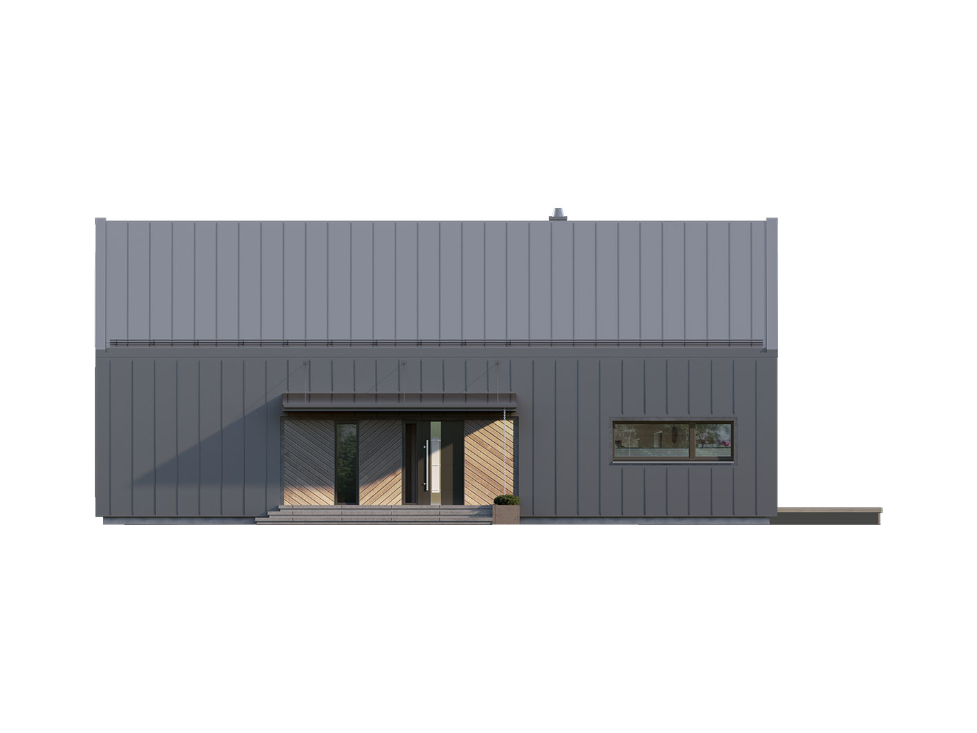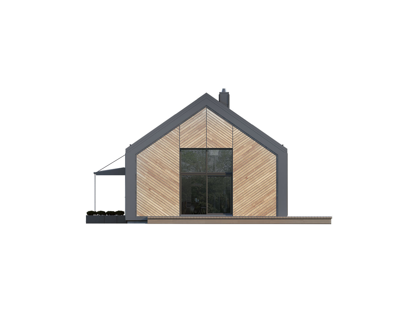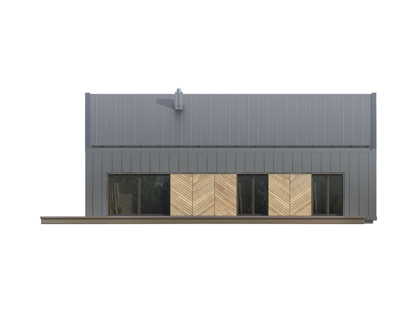 Projekt Hana to dom w stylu nowoczesnej stodoły. Bezokapowa bryła postawiona jest na planie prostokąta. Duże przeszklenia i otwarta przestrzeń salonu nadają nowoczesnego charakteru. Dom spełnia program użytkowy w parterze (109,89 m2) a antresola (49,39 m2) jest dodatkową powierzchnią, niewliczoną do powierzchni użytkowej, która może być zaadaptowana jako mieszkalna lub zabudowana w formie strychu. Dom Hana jest prosty i funkcjonalny a wnętrze pozwala na wiele sposobów aranżacji. Standardowo dom wyposażony jest w rekuperację oraz pompę ciepła.