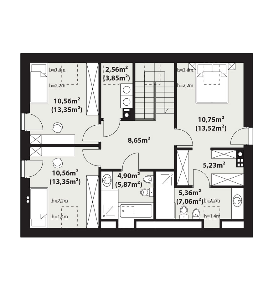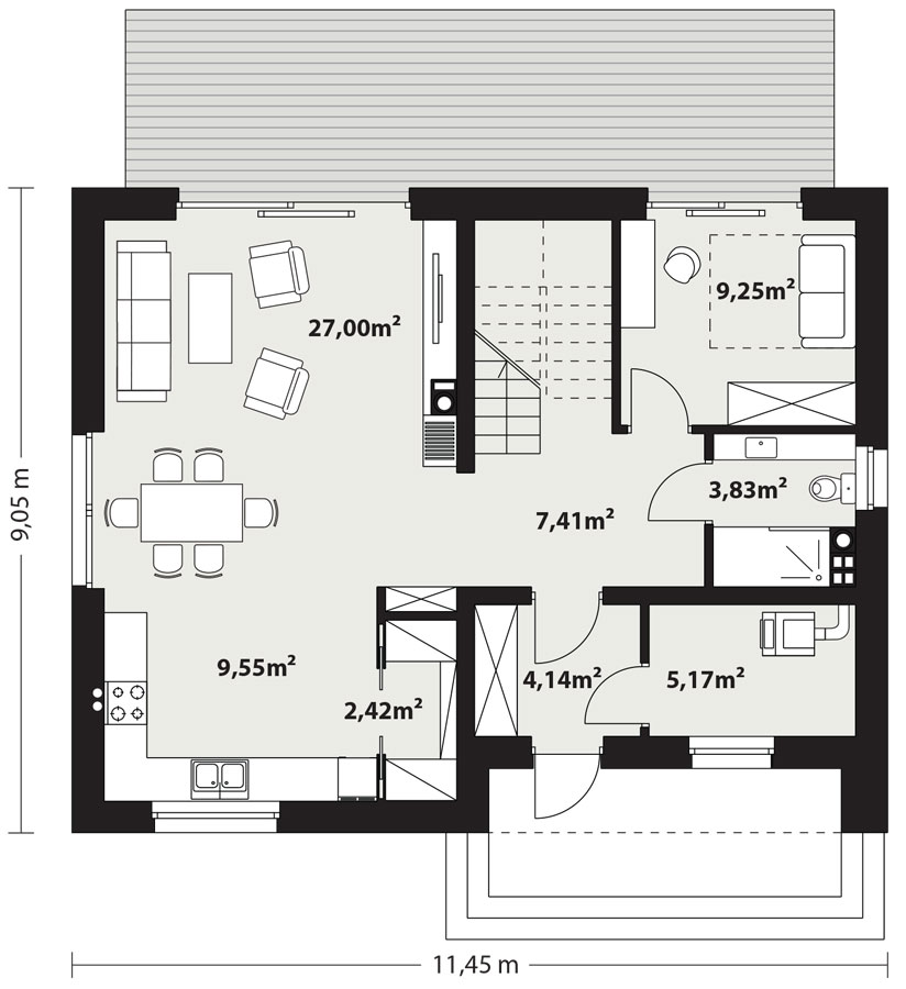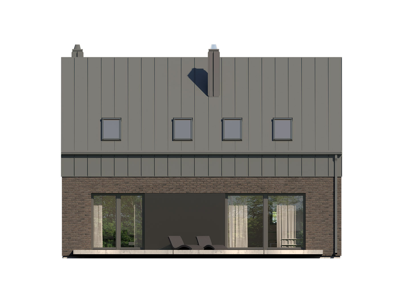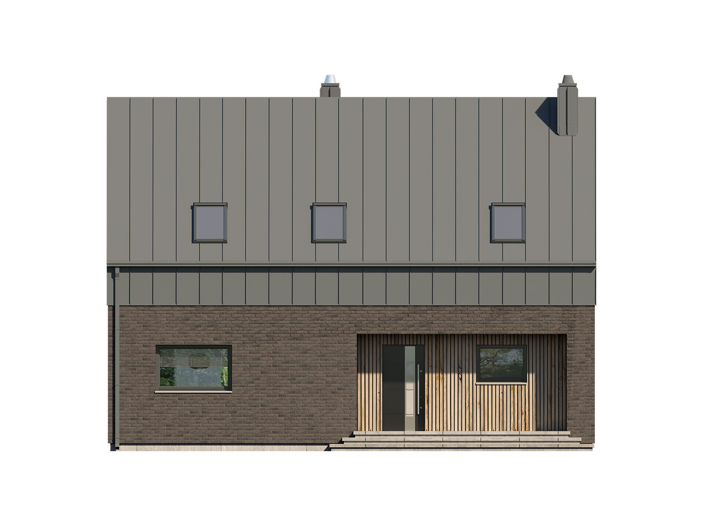 Nemini to jednorodzinny budynek mieszkalny, parterowy z użytkowym poddaszem. Projekt charakteryzuje się prostą bryłą z dwuspadowym dachem, co czyni go niedrogim w budowie i tanim w eksploatacji. Elewacje zostały urozmaicony drewnianą szalówką i beżową płytką elewacyjną imitującą cegłę. Grafitowy dach bezokapowy oraz szklane balustrady nadają budynkowi nowoczesnego charakteru. Ergonomicznie zaprojektowana i wyraźnie podzielona przestrzeń mieszkalna składa się ze strefy dziennej, nocnej i gospodarczej. Najbardziej reprezentacyjna część domu, to przestronny salon połączony z jadalnią, który otwiera się na duży taras oraz kuchnia ze spiżarnią. Oprócz części dziennej przewidziano na parterze dodatkowy pokój, który można wykorzystać na gabinet lub kolejną sypialnię. Na poddaszu przewidziano 3 sypialnie, łazienkę i pralnię. Największa sypialnia ma dodatkowo własną łazienkę i garderobę. Dużą kotłownię, na każdy rodzaj paliwa zlokalizowano w części gospodarczej domu.