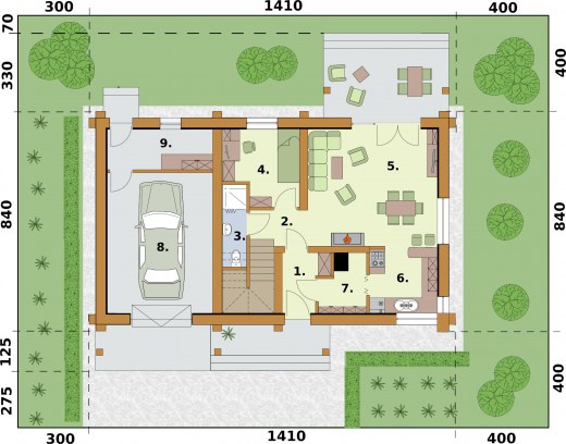 SEVILLA 3A bale drewniane z pojedynczym garażem