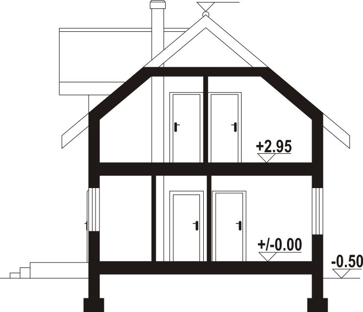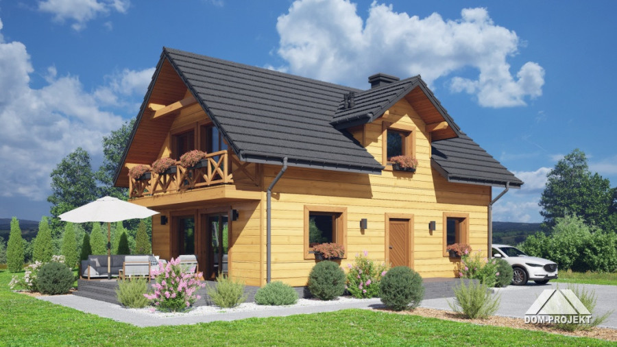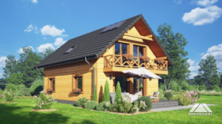 Dom w konstrukcji szkieletu drewnianego. Na parterze salon z aneksem kuchennym, wyjściem na taras i schodami na poddasze. Pokój do pracy, łazienka, kotłownia, wiatrołap. Na poddaszu cztery pokoje, łazienka, komunikacja, balkon dostępny z dwóch pokoi. Zwarta bryła budynku oraz dach dwuspadowy sprzyjają szybkiej i taniej budowie oraz niskim kosztom eksploatacji.