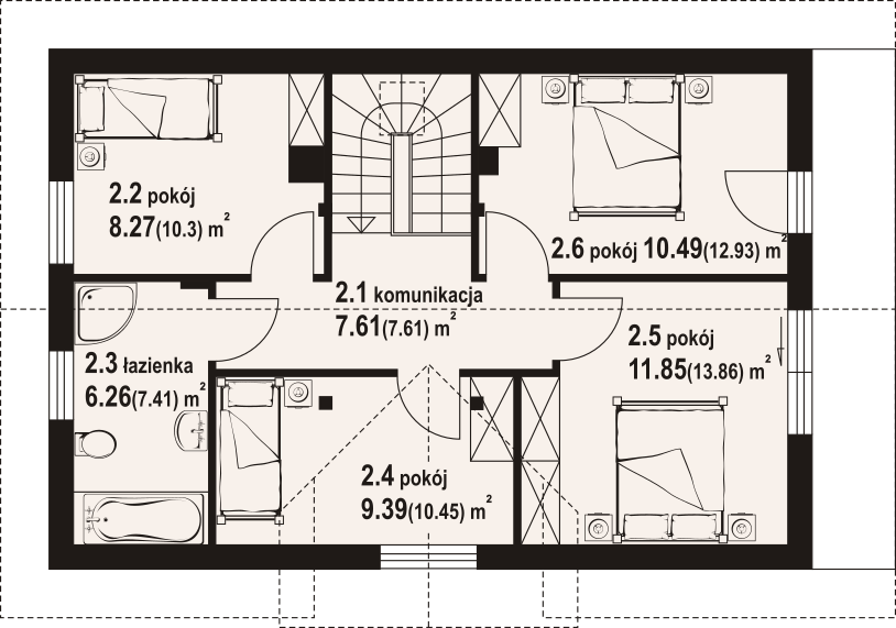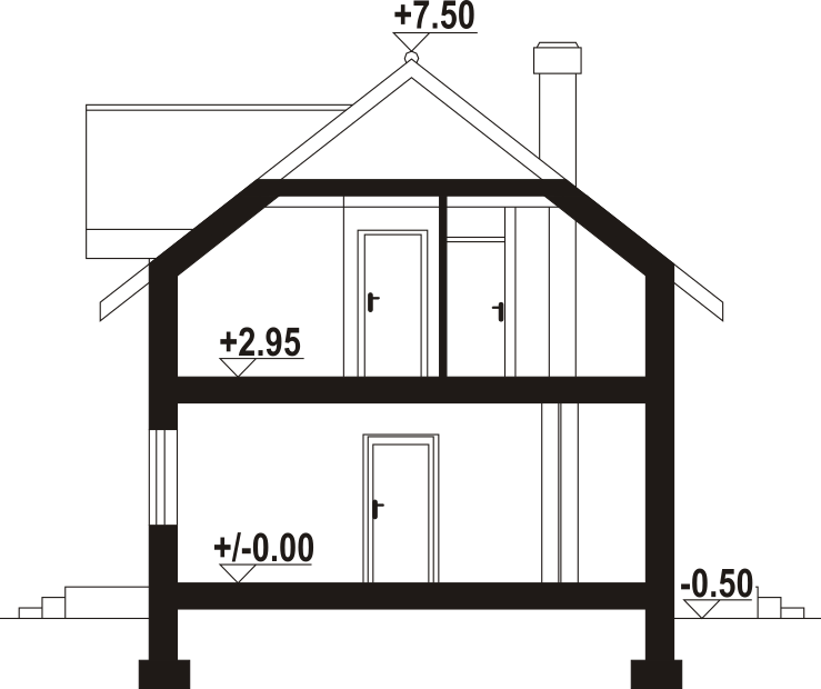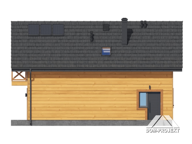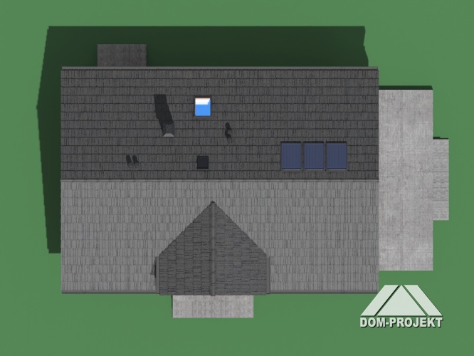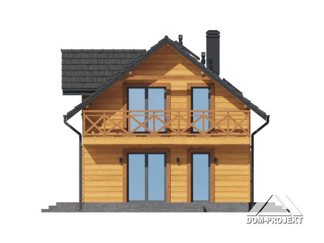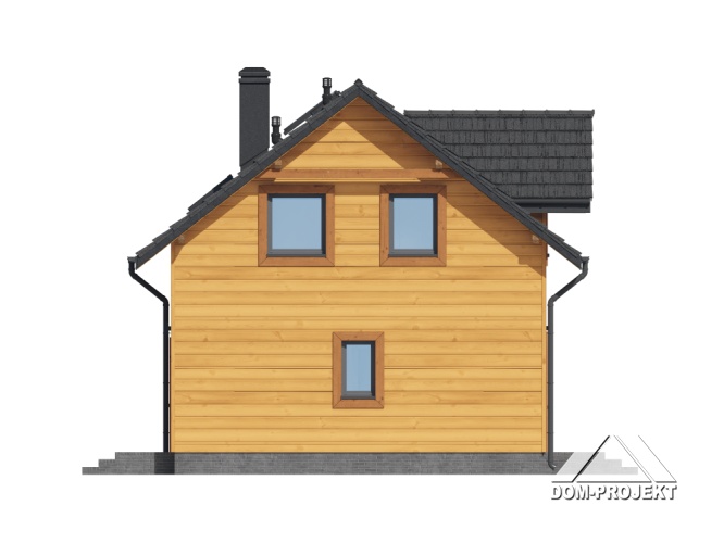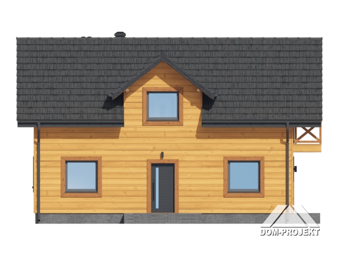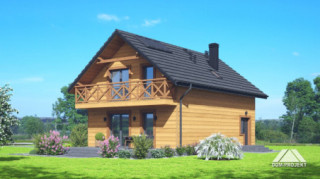 Dom w konstrukcji szkieletu drewnianego. Na parterze salon z aneksem kuchennym oraz wyjściem na taras. Pokój do pracy, wc z pralką, kotłownia, komunikacja, wiatrołap. Na poddaszu cztery pokoje, łazienka, komunikacja. Zwarta bryła budynku oraz dach dwuspadowy sprzyjają szybkiej i taniej budowie oraz niskim kosztom eksploatacji.