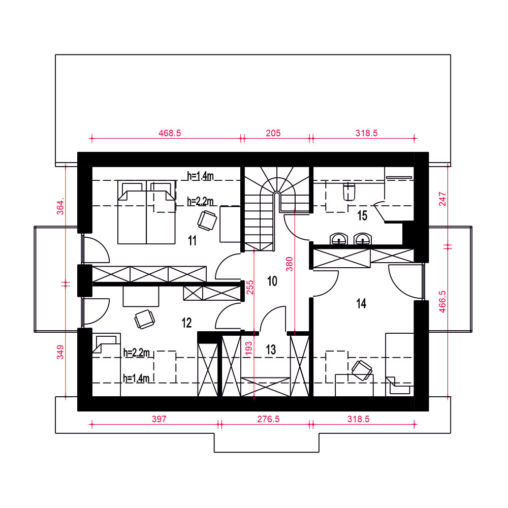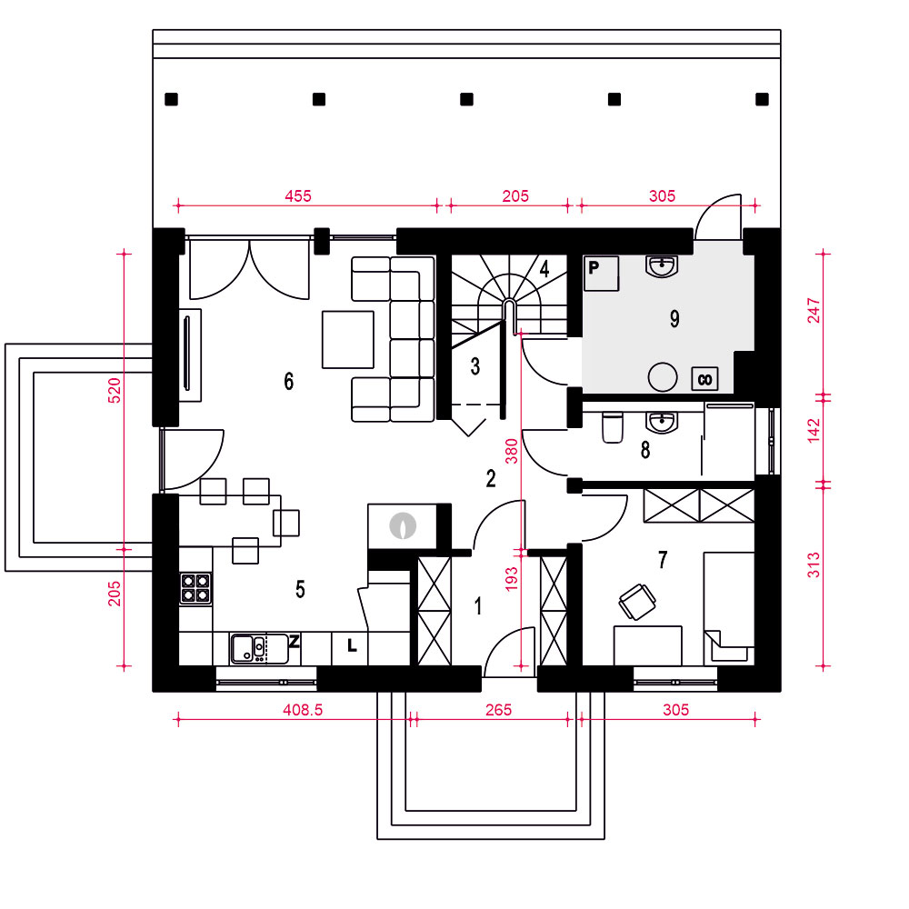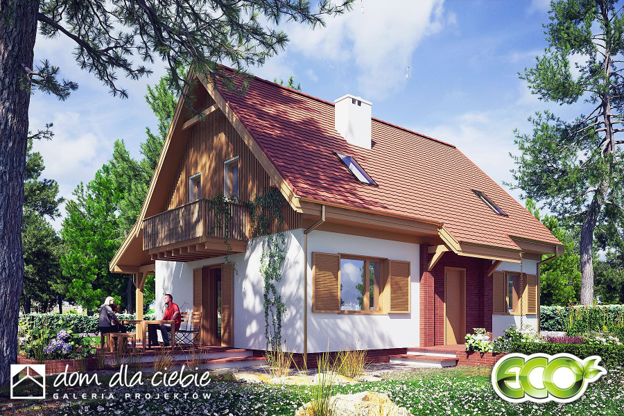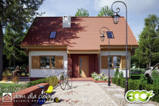 Rodzynka to projekt domu jednorodzinnego, Z dwuspadowym dachem w układzie kalenicowym względem frontu budynku. Dom dla czteroosobowej rodziny i wyróżnia się uniwersalnym wzornictwem. Wejście główne do domu prowadzi do wiatrołapu z praktycznymi szafami. Na parterze znajduje się dodatkowy pokój. Otwarta kuchnia obejmuje spiżarnię. Serce domu stanowi centralnie umieszczony kominek. Taras, ciągnący się przez cała elewację. Obok kuchni znajduje się miejsce na stół. Z holu można dotrzeć do małej łazienki i pomieszczenia technicznego. Pod drewnianymi schodami znajduje się garderoba. Na piętrze rozmieszczono trzy przytulne sypialnie oraz wspólną łazienkę. Ten projekt stanowi atrakcyjną propozycję ekonomicznego i ekologicznego domu, doskonale dostosowanego do stałego zamieszkania przez cały rok.fundamenty: BETONOWE ściany zewnętrzne: POROTHERM+STYROPIAN TERMO ORGANIKA ściany wewnętrzne: POROTHERM rodzaj stropu: MONOLITYCZNY elewacje: TYNK STRUKTURALNY pokrycie dachu: DACHÓWKA CERAMICZNA