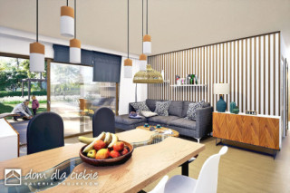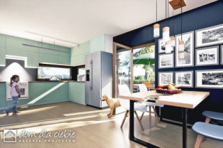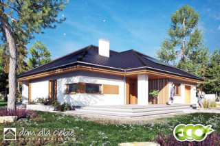 Projekt Jerzynka II to pomysł na piękny parterowy dom dla 3-4 osobowej rodziny. Dom ma ciekawy układ z trzema strefami: wspólną, prywatną i techniczną. W części wspólnej znajduje się duży salon z kominkiem i tarasem, sąsiadująca z otwartą kuchnią i spiżarnią. Część prywatna obejmuje trzy przytulne sypialnie, łazienkę, garderobę i osobne WC. Pomieszczenie techniczne łączy się z garażem. Projekt ten jest idealny dla osób ceniących praktyczne i ciekawe rozwiązania architektoniczne. Dom jest także dostosowany do wygody osób starszych, ponieważ wszystkie pomieszczenia są na jednym poziomie.fundamenty: BETONOWE ściany zewnętrzne: POROTHERM+STYROPIAN TERMO ORGANIKA ściany wewnętrzne: POROTHERM rodzaj stropu: TERIVA elewacje: TYNK STRUKTURALNY pokrycie dachu: DACHÓWKA CERAMICZNA