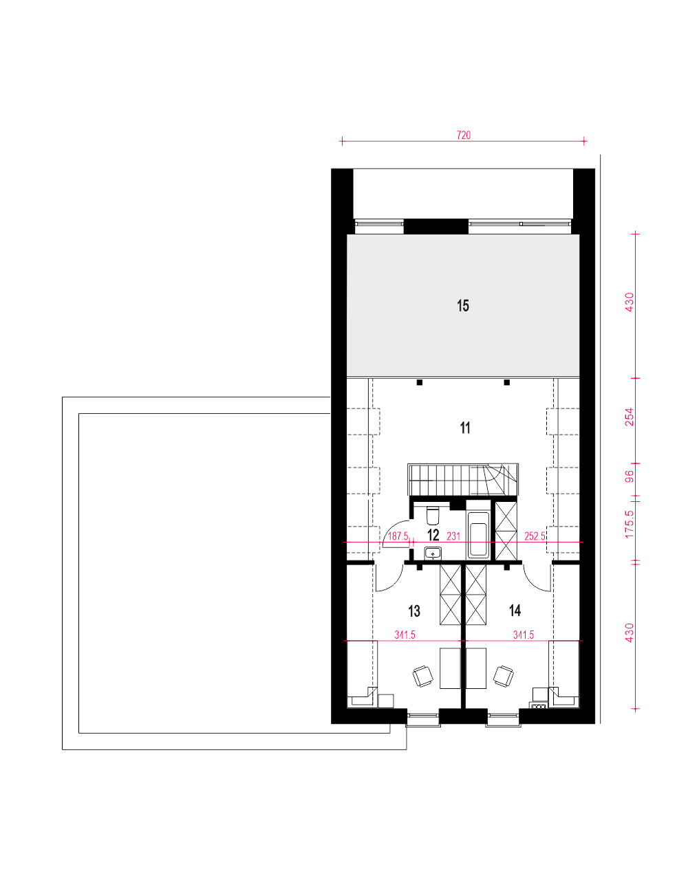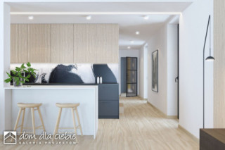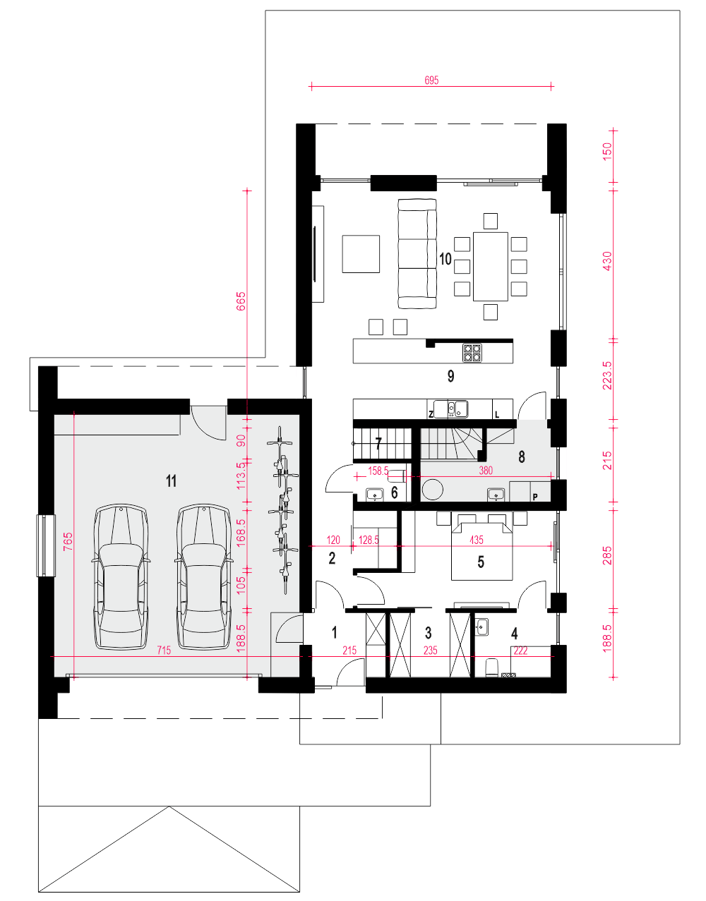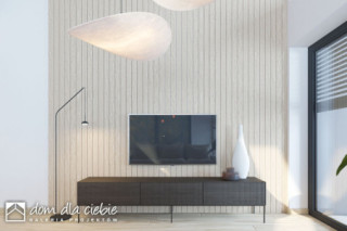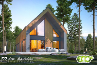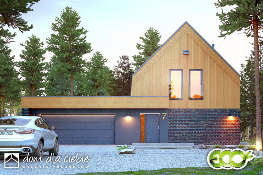 Wygodny z garażem dwustanowiskowym to projekt nowoczesnego domu typu stodoła, z poddaszem użytkowym dla osób poszukujących funkcjonalnego domu mieszkalnego. To projekt o prostej bryle z dużymi przeszkleniami w strefie ogrodowej, z elewacją z okładziny ceramicznej i z drewnem, dachem pokrytymi blachą. Na funkcję budynku składa się parter, gdzie przewidziano wygodną główną sypialnię z garderobą i łazienką, wygodną kuchnię z salonem i jadalnią. Z salonu zaprojektowano wyjście na obszerny taras ogrodowy. Od frontu zaprojektowano wygodny garaż jedno stanowiskowy z płaskim dachem. Na poddaszu przewidziano dużą antresolę, łazienkę i dwa pokoje sypialne. Dom idealnie wpisze się w każdy krajobraz, ale dzięki kolorystyce i materiałom zastosowanym na elewacji będzie się idealnie komponował w otoczeniu natury. Dzięki zastosowaniu pompy ciepła i wentylacji mechanicznej oraz dzięki rozwiązaniom energooszczędnym w tym odpowiedniej grubości izolacji termicznej oraz dzięki ciepłemu montażowi stolarki, dom powinien być ekonomiczny w użytkowaniu.