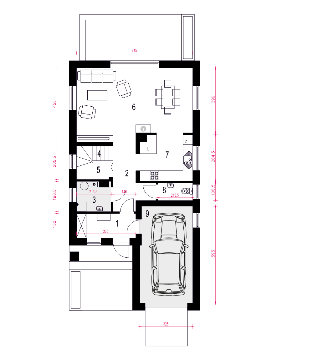 Kosma to kompaktowy projekt dla 4-osobowej rodziny.fundamenty: BETONOWE ściany zewnętrzne: POROTHERM+STYROPIAN TERMO ORGANIKA ściany wewnętrzne: POROTHERM rodzaj stropu: TERIVA elewacje: TYNK STRUKTURALNY, CEGŁA KLINKIEROWA pokrycie dachu: DACHÓWKA CERAMICZNA