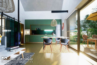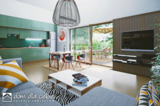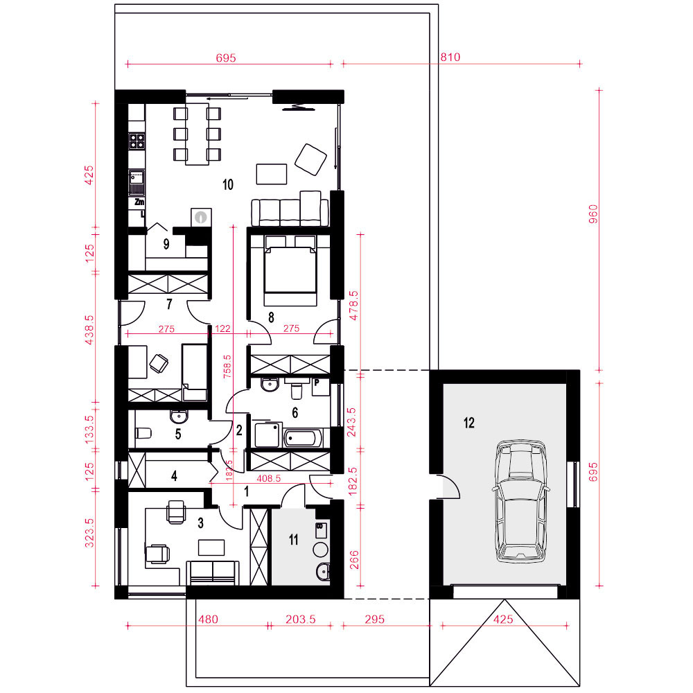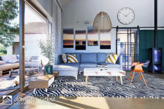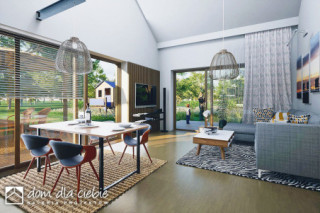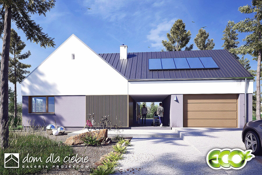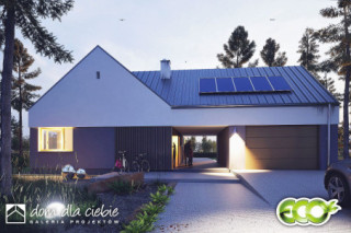 Pleszka II to prosty i nowoczesny dom dla 3-4 osobowej rodziny. Dom jest parterowy, z otwartą przestrzenią dzienną i dachem łącząbym budynek garażowy z mudynkiem mieszkalnym. Budynek jest wykonany z tradycyjnych materiałów, takich jak murowane ściany i drewniane wiązary dachowe. Dach o nachyleniu 40 stopni ma kształt litery L. Dom jest utrzymany w jasnych kolorach. Jest to świetna inwestycja dla rodziny, która szuka funkcjonalnego i stylowego domu.fundamenty: BETONOWE ściany zewnętrzne: POROTHERM+STYROPIAN TERMO ORGANIKA rodzaj stropu i konstrukcja dachu: wiązary prefabrykowane MITEK elewacje: TYNK STRUKTURALNY pokrycie dachu: BLACHA