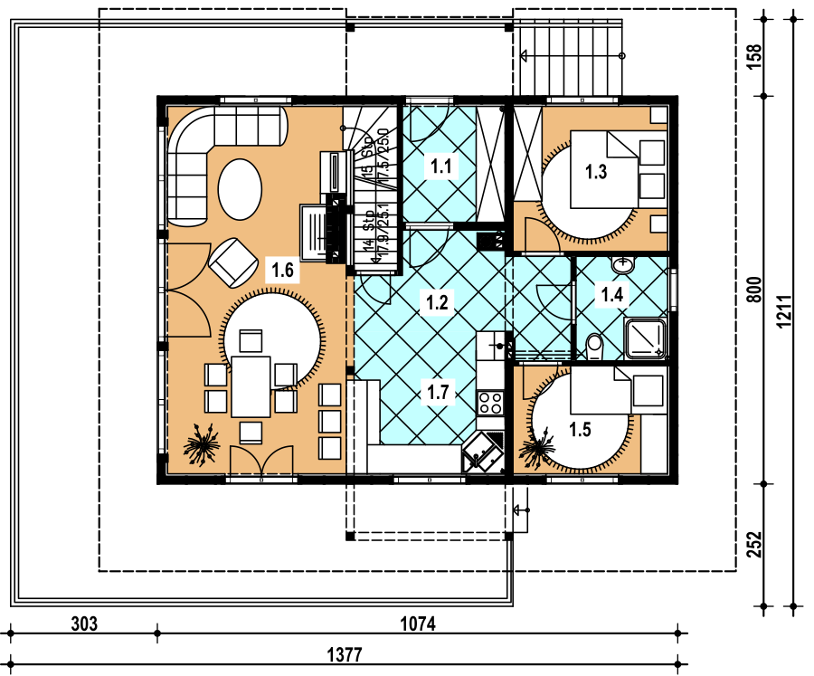 1 kuchnia 8.90 pokój dzienny 27.70 pokój 7.10 łazienka 4.00 sypialnia 9.50 hall 8.30 wiatrołap 5.10