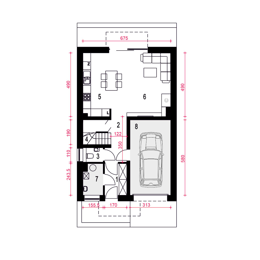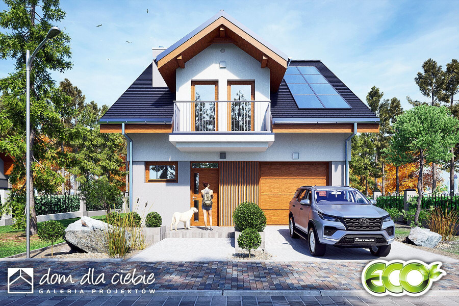 Dom Aida to tradycyjny, dwukondygnacyjny dom jednorodzinny z użytkowym poddaszem, idealny dla wąskich działek, zabudowy bliźniaczej lub szeregowej. Zaprojektowany na rzucie prostokąta. Salon z jadalnią, kuchnią i kominkiem otwiera się na taras, tworząc przyjemne miejsce spotkań. W strefie komunikacyjnej znajdziemy praktyczną szafę wnękową (wiatrołap), schowek pod schodami, WC, pomieszczenie techniczne, garaż oraz schody na poddasze w centralnej części budynku.Na poddaszu znajdują się trzy sypialnie i obszerna łazienka, z wyjściami na balkony. Dom Aida wyróżnia się proporcjonalnym, symetrycznym kształtem, a pionowe okna balkonowe zapewniają doskonałe naturalne oświetlenie. Polecany dla różnych osiedli dzięki klasycznemu charakterowi architektury, doskonale sprawdzi się w różnych środowiskach miejskich. Dzięki oszczędnej formie i niewielkiej powierzchni użytkowej jest ekonomiczny zarówno w eksploatacji, jak i realizacji. Zewnętrzna elewacja wyróżnia się delikatnym detalem i naturalną kolorystyką, tworząc harmonijny obraz domu Aida.fundamenty: BETONOWE ściany zewnętrzne: POROTHERM+STYROPIAN TERMO ORGANIKA rodzaj stropu: TERIVA I elewacje: TYNK STRUKTURALNY pokrycie dachu: DACHÓWKA CEM. lub CER.