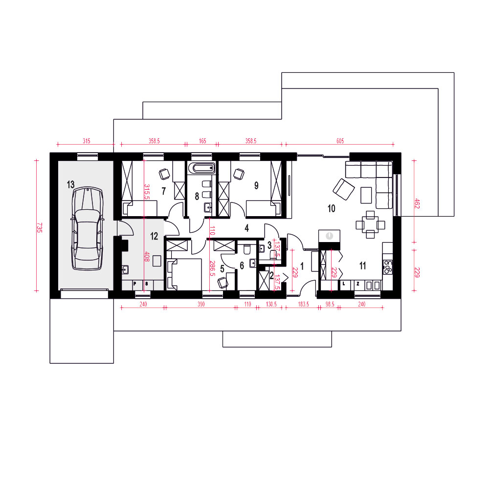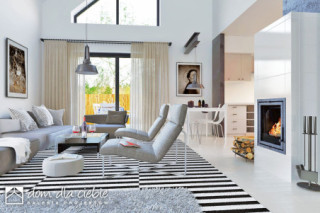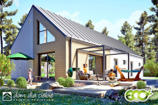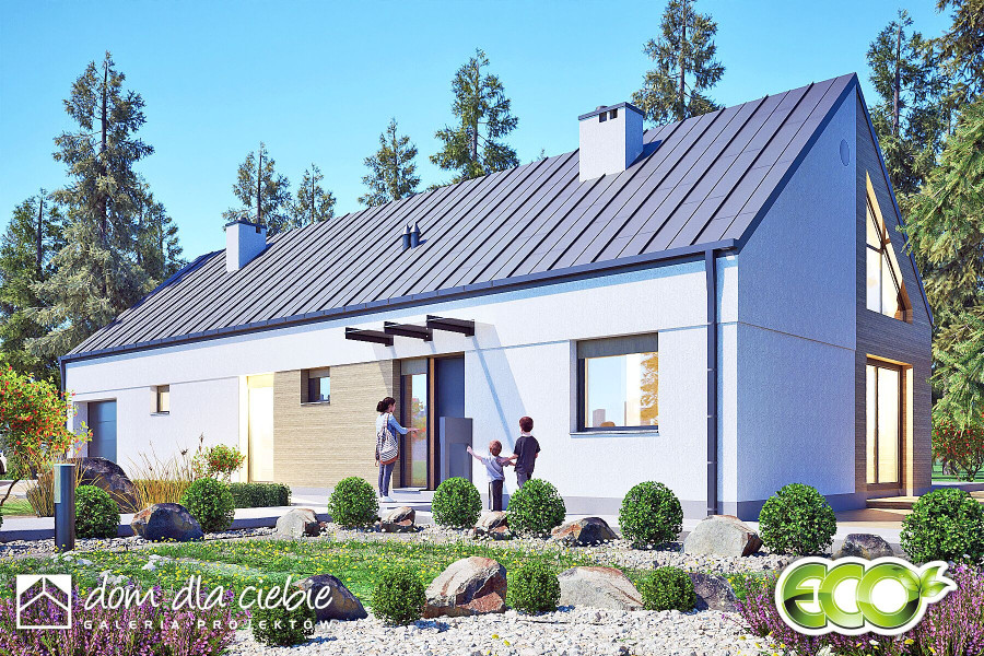 Żurawinka II to nowoczesna architektura małego domu. Nadaje się na wąskie działki i przeznaczona jest dla 4-osobowej rodziny. Zaprojektowana została w technologii murowanej z prefabrykowanymi wiązarami dachowymi. Bryła domu przekryta jest stromym dachem dwuspadowym. Funkcja Żurawinki II zawiera w sobie salon z kominkiem, kuchnię ze spiżarnią oraz miejsce (jadalnia) na stół rodzinny. Hol prowadzi do części domu z dwoma pojedynczymi sypialniami rozdzielonymi wspólną wygodną łazienką oraz sypialni podwójnej z łazienką indywidualną. Na końcu korytarza znajduje się pomieszczenie techniczne – pralnia. Z boku domu znajduje się jednostanowiskowy garaż.