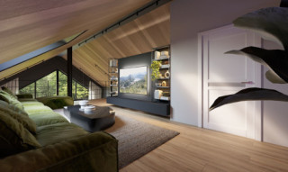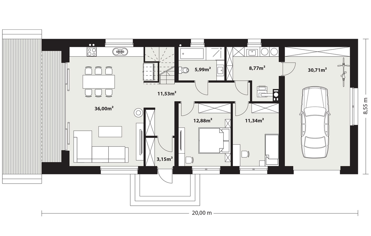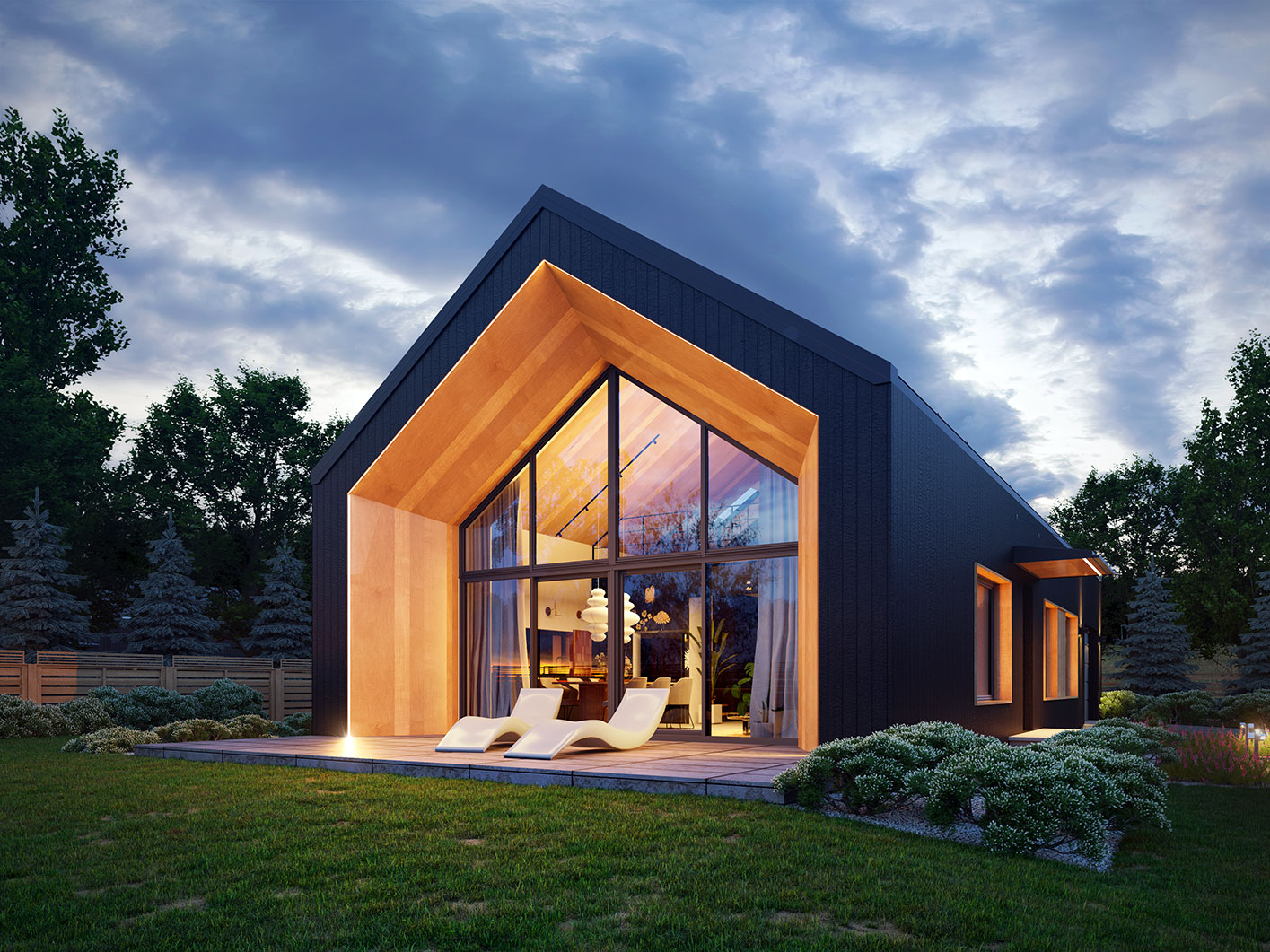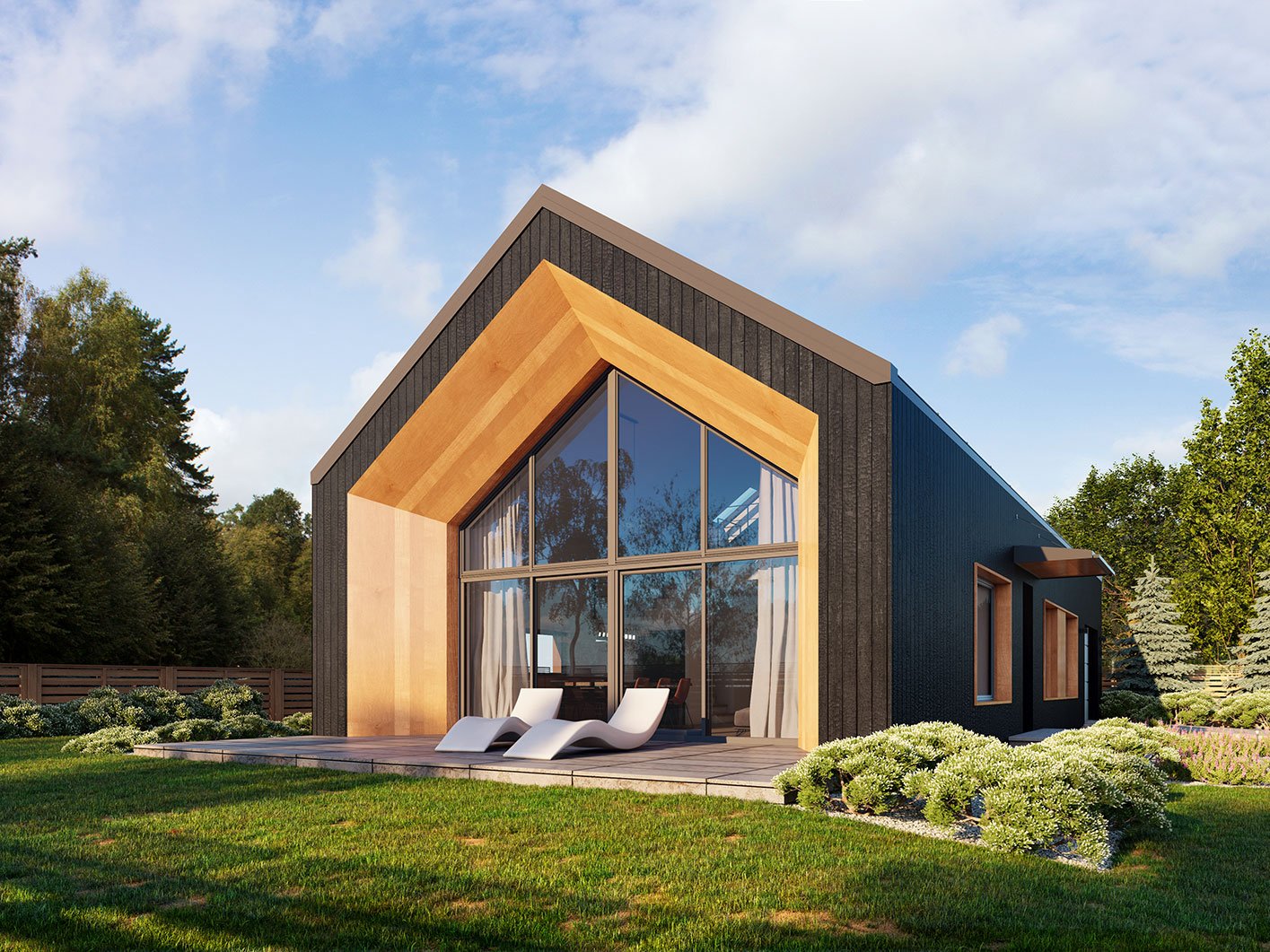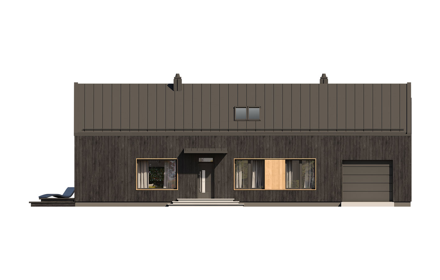 Neo 2 to projekt domu w stylu nowoczesnej stodoły z poddaszem i garażem. Zwarta bryła budynku została zaprojektowana na rzucie prostokąta. Przykryto ją dwuspadowym dachem. Duże przeszklenia i otwarta przestrzeń salonu nadają nowoczesnego charakteru. Dom posiada trzy sypialnie: dwie zlokalizowane na parterze i jedna na poddaszu. Otwarta przestrzeń antresoli może być zagospodarowana na wiele sposobów. Część gospodarcza na parterze z garażem i dużą kotłownią także zapewnia sporo użytecznej przestrzeni.