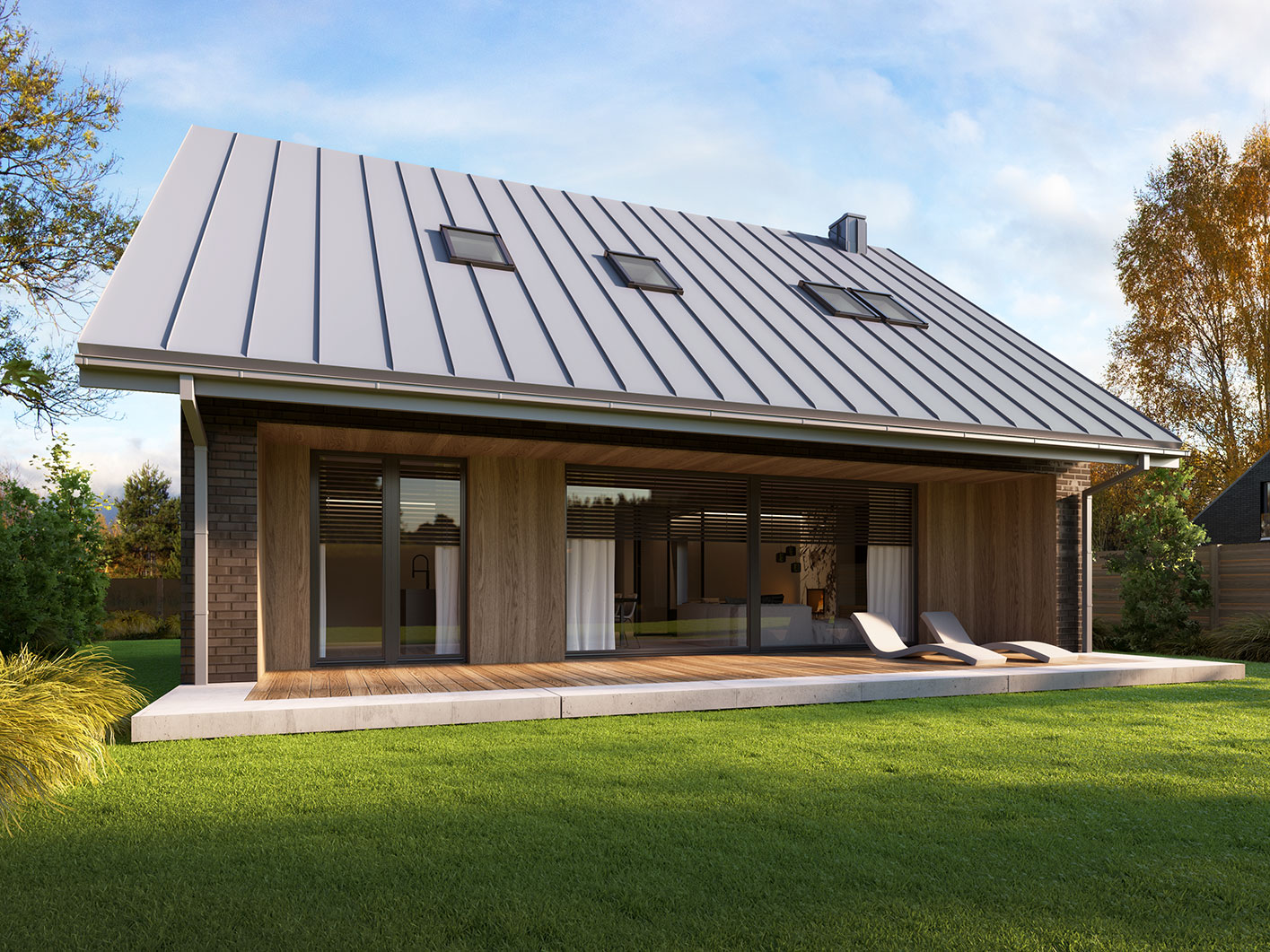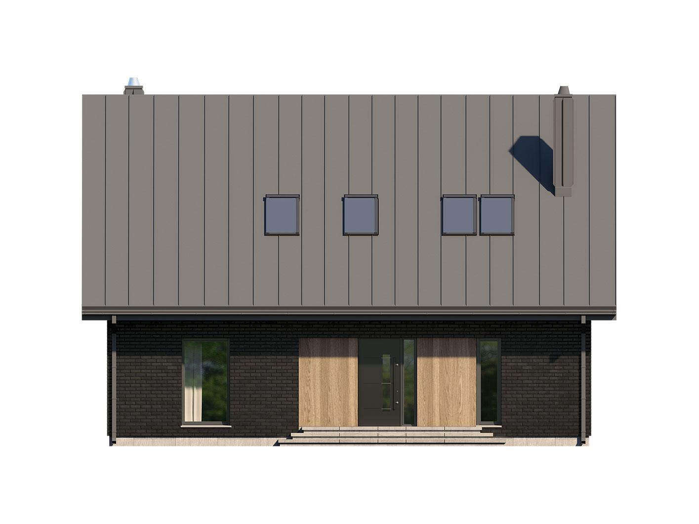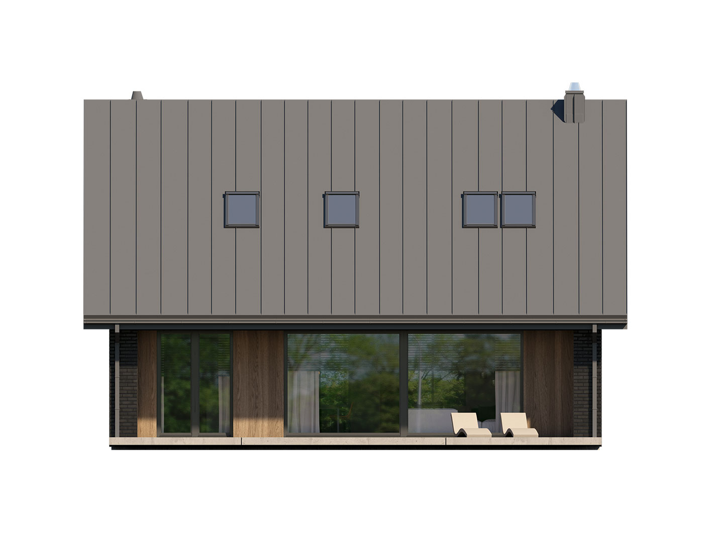 Projekt Muna to dom parterowy z użytkowym poddaszem o nowoczesnej formie i funkcjonalnych, przestronnych wnętrzach. Z pewnością spodoba się osobom preferującym nietuzinkowe rozwiązania i zafascynowanym nowoczesną architekturą. Prosta bryła budynku na rzucie prostokąta z dwuspadowym, bezokapowym dachem została urozmaicona przeszkleniami nadającym lekkości. Wyrafinowana stylistyka została osiągnięta poprzez subtelny detal oraz kontrast trzech materiałów - antracytowej blachy, płytki elewacyjnej imitującej cegłę i ciepłego koloru drewnianej szalówki. Atutem projektu domu Muna jest ciekawa, otwarta część dzienna, bardzo dobrze doświetlona dzięki ogromnym przeszkleniom. Przeszklenia te zarówno z salonu jak i jadalni prowadzą na częściowo zadaszony taras na całej długości budynku. Taka aranżacja kuchni, salonu i jadalni sprawia, że wydają się one jeszcze większe a krajobraz z zewnątrz przenika do wnętrza stając się jego nieodzowną częścią. Pasjonatom gotowania na pewno spodoba się wygodna, nowoczesna kuchnia dopełniona praktyczną, dużą spiżarnią. Funkcjonalny program parteru uzupełnia jeszcze gabinet, łazienka, duża kotłownia. Szerokie, wygodne schody prowadzą na poddasze gdzie znajdują się 3 sypialnie. Największa z nich posiada własną garderobę. Całość funkcjonalną poddasza dopełnia wspólna łazienka i pralnia. Projekt Muna jest idealną propozycją dla 4-5 osobowej rodziny, która ceni elegancki, nowoczesny wygląd budynku i jego wyrafinowaną stylistykę.