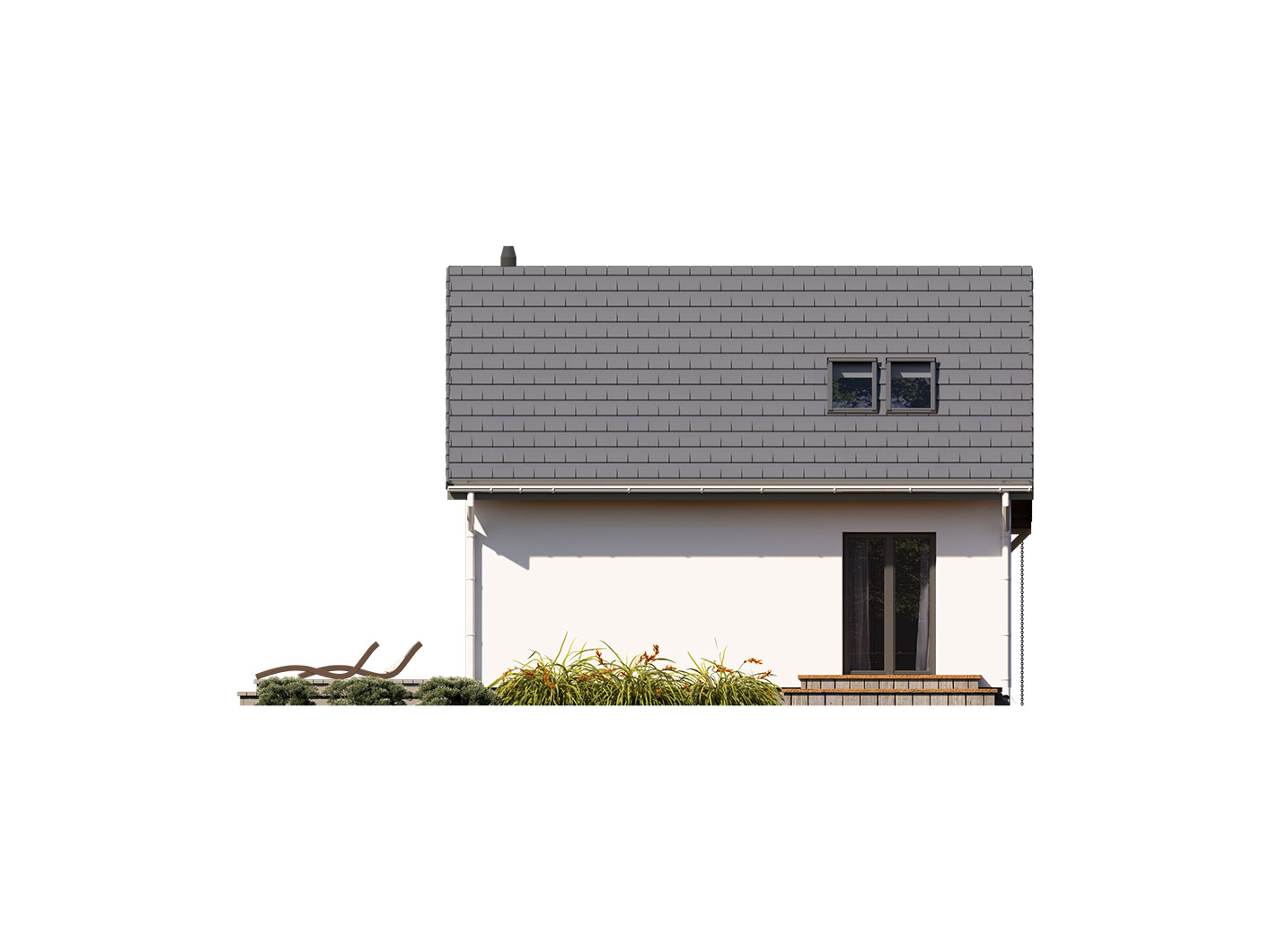 Erna 3 to niewielki dom jednorodzinny lub letniskowy. Posiada sypialnię na parterze oraz otwartą część dzienną z antresolą na której jest dodatkowa przestrzeń do dowolnej aranżacji. Dzięki powierzchni zabudowy 69,5 m2, może być budowany na zgłoszenie. Dom posiada duże przeszklenie w ścianie szczytowej a wejście jest przez zadaszony taras z boku domu co pozwala sytuować dom również na działkach z wejściem od południa. Standardowo dom wyposażony jest w pompę ciepła oraz kominek.