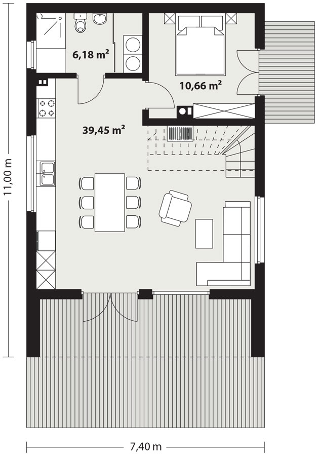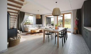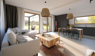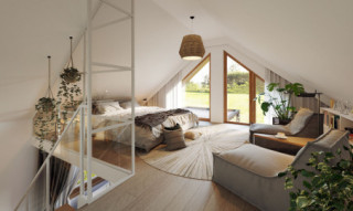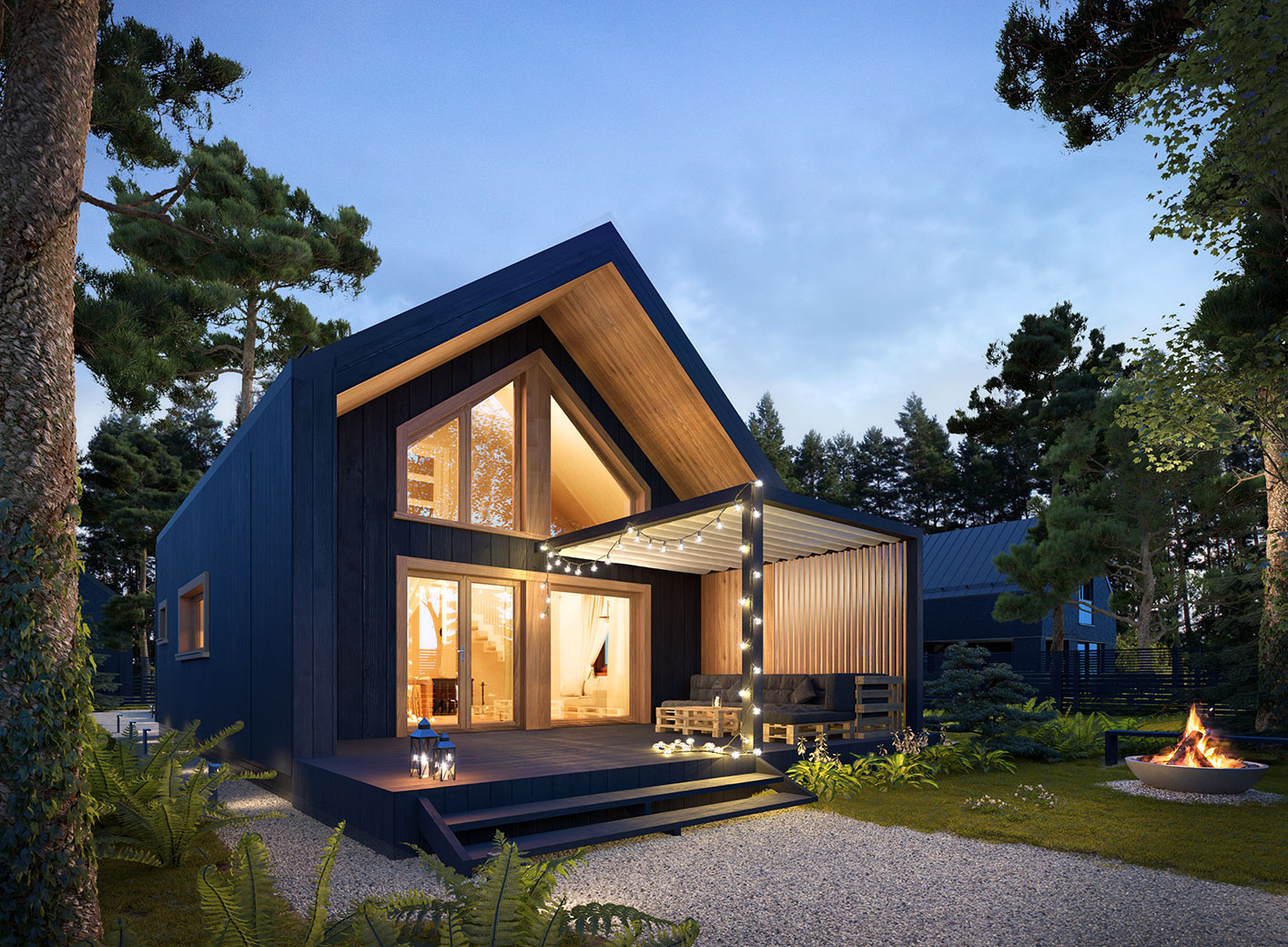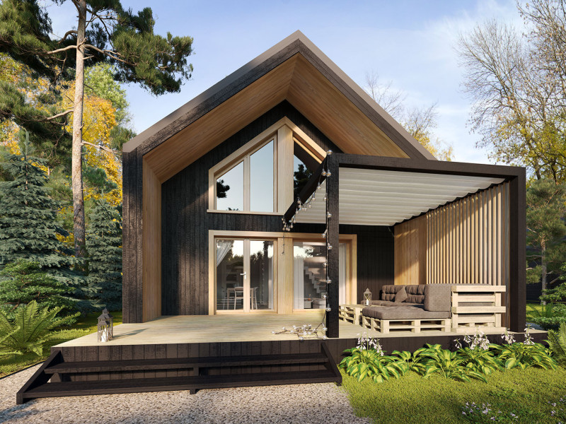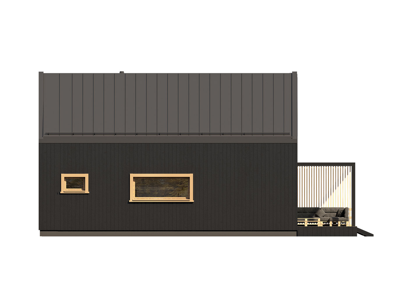 Erna 2 drewniana do niewielki dom jednorodzinny lub letniskowy. Posiada trzy sypialnie oraz otwartą część dzienną. Dzięki powierzchni zabudowy 69,5 m2, może być budowany na zgłoszenie. Jest to "nowoczesna stodoła" z przeszkleniami w ścianie szczytowej. Wejście do domu jest przez taras co pozwala sytuować dom na działkach z wejściem od południa. Standardowo dom wyposażony jest w pompę ciepła oraz kominek.