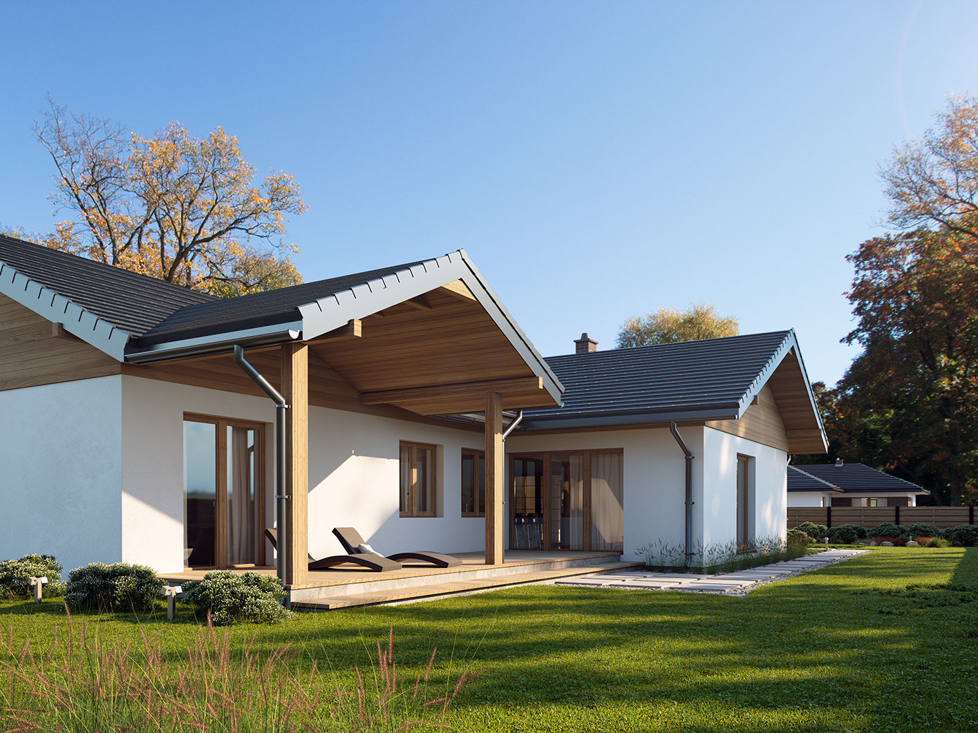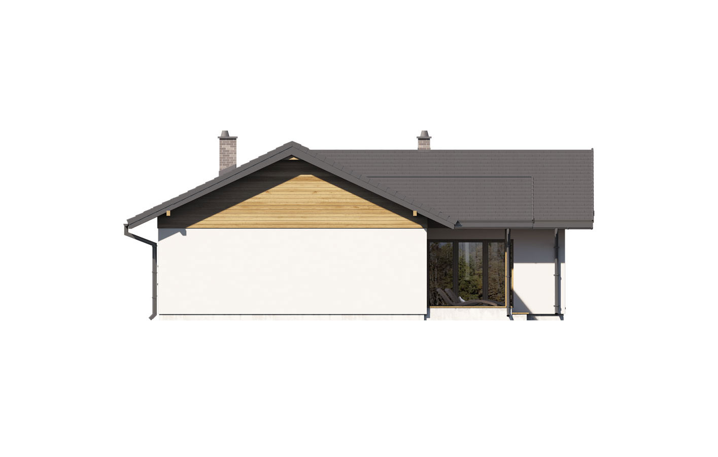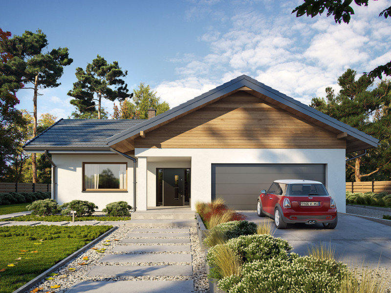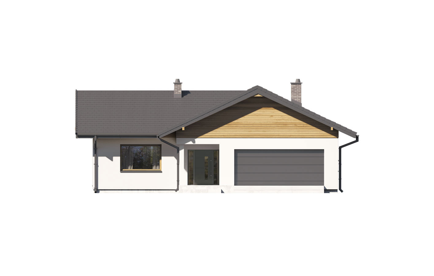 Della 2 to parterowy dom jednorodzinny z dwustanowiskowym garażem. Swoim pełnym programem funkcjonalnym zapewnia komfort i wygodę nawet 5-osobowej rodzinie. Przestronna część dzienna to salon z jadalnią otwierający się na ogród oraz częściowo otwartra kuchnia. Część nocna to 3 wygodne sypialnie, gabinet i łazienka. Dodatkowo główna sypialnia posiada własną garderobę. W domu zaprojektowano dużą kotłownię dostępną z garażu, której parametry pozwalają na montaż kotła na każdy rodzaj paliwa, w tym na paliwo stałe. Część gospodarczą uzupełnia jeszcze pralnia i dwustanowiskowy garaż. Ten optymalny i ciekawy program funkcjonalny został ujęty w tradycyjnej bryle przykrytej wielospadowym dachem.