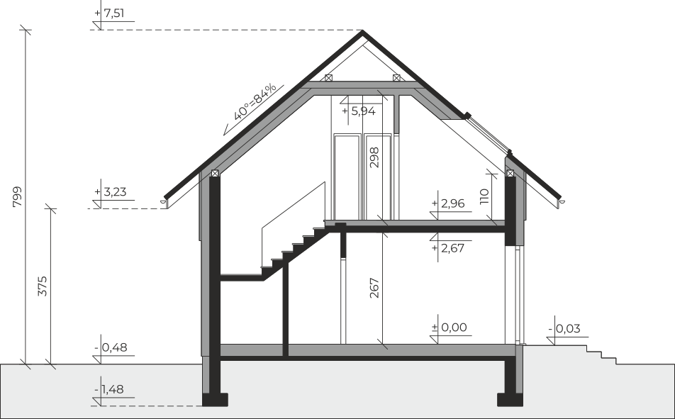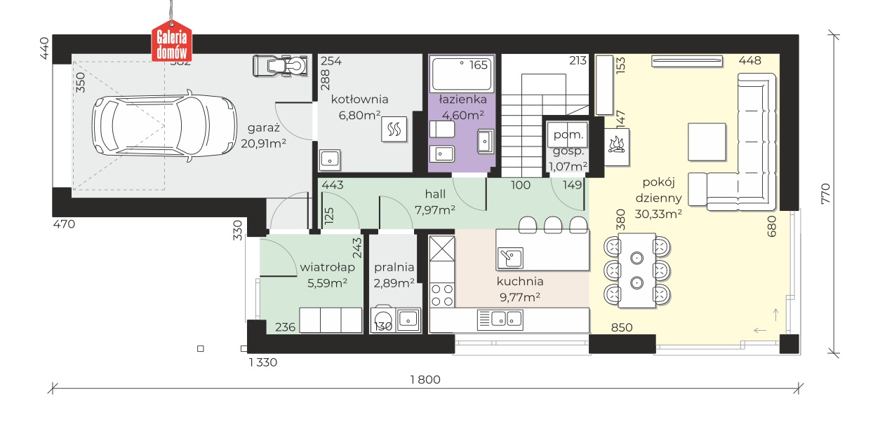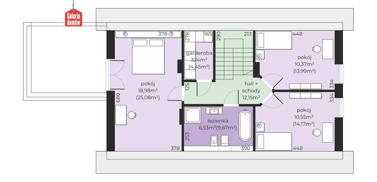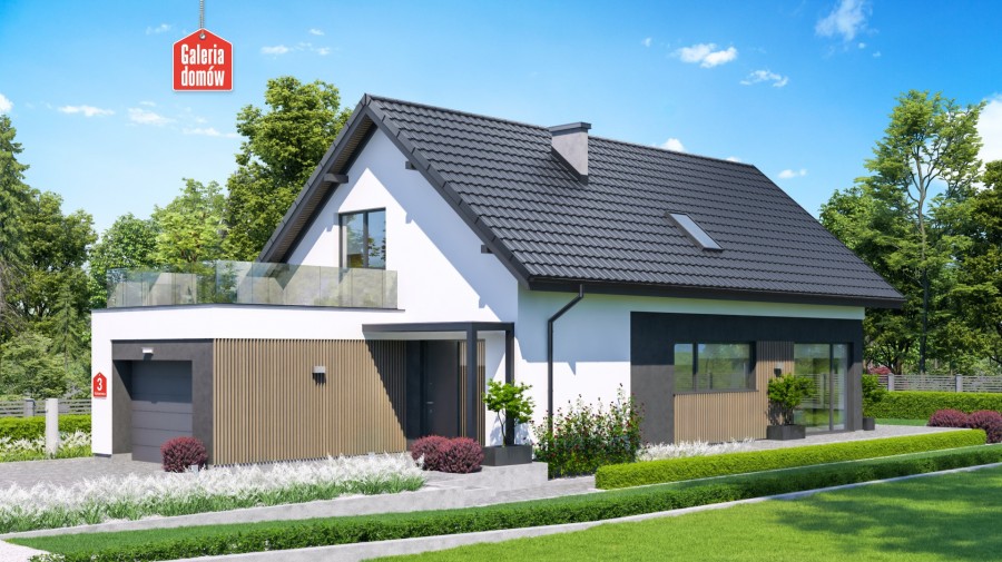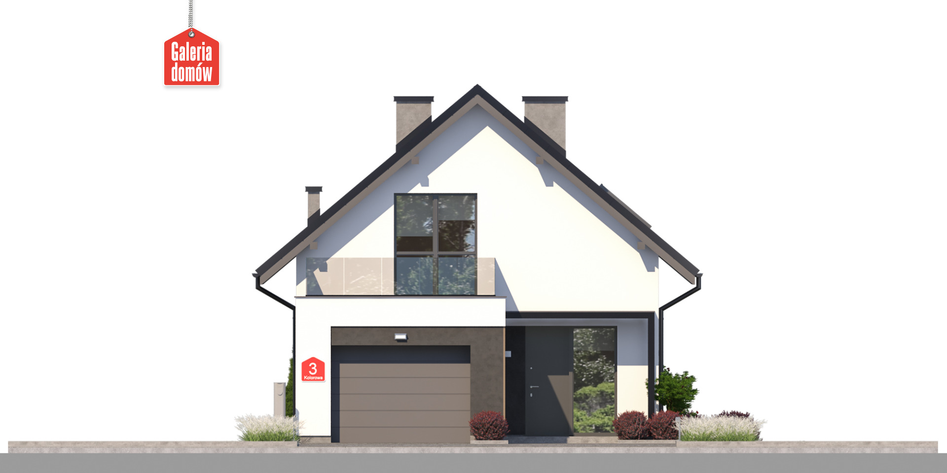 Dom przy Kolorowej 3 to projekt domu jednorodzinnego z poddaszem użytkowym i pojedynczym garażem. Powierzchnia użytkowa wynosi 120 m². Na parterze zaprojektowano pokój dzienny, kuchnię, łazienkę, pomieszczenie gospodarcze oraz pralnię. Za garażem przewidziano kotłownię. Na poddaszu zaprojektowano 3 pokoje, garderobę oraz główną łazienkę. Atrakcyjnym dodatkiem jest obszerny taras dostępny z sypialni małżeńskiej, zlokalizowany nad garażem. Dom przy Kolorowej 3 to doskonały projekt domu na wąskie działki. Wystarczy 13.6 metra szerokości, by móc zbudować dom na działce. Dom zaprojektowany w technologii tradycyjnej murowanej, posiada charakterystykę energetyczną według warunków WT 2021. Został opracowany z myślą o możliwości szybkiego dostosowania do planowanych wymagań dla domów nisko i zeroemisyjnych.