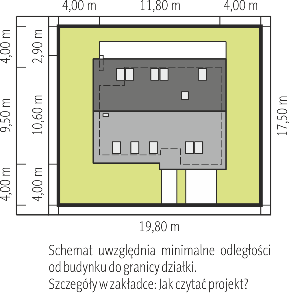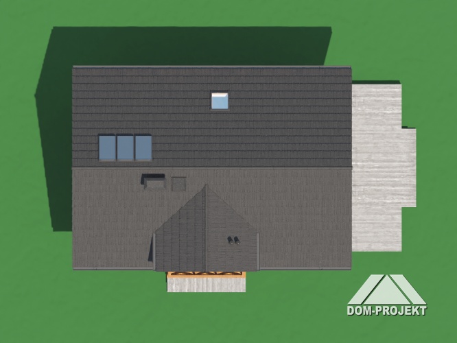 Dom przy Cyprysowej 77 to projekt domu nowoczesnego i energooszczędnego. Tani w budowie, kompaktowe rozmiary, funkcjonalne wnętrze. Powierzchnia użytkowa 80 m², dach dwuspadowy o kalenicy prostopadłej do drogi. Na parterze mieści się słoneczna strefa dzienna z pokojem i kuchnią. Dodatkowo do dyspozycji mieszkańców oddano sypialnię i w pełni wyposażoną łazienkę. Dla obniżenia całościowych kosztów realizacji zrezygnowano z garażu na rzecz funkcjonalnej i taniej w wykonaniu wiaty garażowej. Na poddaszu zaprojektowano przytulną strefę nocną. Trzy pokoje i łazienka zapewniają odpowiednio dużo miejsca 4-5 osobowej rodzinie. Pomieszczenia są jasne i przyjemne, ponieważ posiadają drzwi balkonowe, które doskonale doświetlają wnętrze i zapewniają niezakłócony dopływ świeżego powietrza. Zwarta bryła, prosty dach dwuspadowy dach i niewielkie rozmiary sprawiają, iż Dom przy Cyprysowej 77 wybudujemy szybko i stosunkowo niewielkim kosztem. Budynek należy do kategorii energooszczędnych i został opracowany zgodnie ze standardami WT 2021. Projekt zawiera dodatkowe schematy rekuperacji, instalacji solarnej i fotowoltaicznej, a także projekt ogrzewania pompą ciepła. Dom przy Cyprysowej 77 został zaprojektowany z myślą o warunkach, jakie powinny w przyszłości spełniać projekty domów zeroemisyjnych.