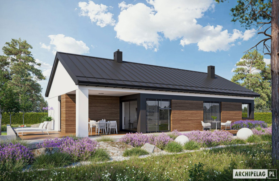 Charakterystyka: Dom parterowy, niepodpiwniczonyPrzeznaczenie: Dom dla 3-4-osobowej rodziny Technologia i konstrukcja:Ściany zewnętrzne: murowane, dwuwarstwowe, beton komórkowy firmy Solbet 24 cm, ocieplenie styropian Termo Organika 20 cmŚciany wewnętrzne: nośne i działowe murowane, beton komórkowy firmy Solbet 24 cm i 12 cmStrop: gęstożebrowy Teriva, ocieplenie wełna mineralna Isover 30 cmDach: więźba tradycyjna krokwiowo płatwiowa z dwoma ściankami stolcowymi, Galeco DACHRYNNA OKAPOWA - zintegrowany system 2w1 łączący pokrycie dachowe na rąbek wraz z ukrytym systemem rynnowym w połaciRozwiązania instalacyjne:Ogrzewanie: kocioł gazowy kondensacyjny firmy Viessmann, rozprowadzenie ciepła: grzejniki firmy PurmoWentylacja: grawitacyjnaOZE: kolektory słoneczne firmy ViessmannDodatkowo: stacja uzdatniania wody firmy Viessmann Wykończenie:Elewacje: tynk cienkowarstwowy mineralny w kolorze białym TO-PA 001 z palety firmy Termo Organika okładzina drewnianaStolarka: aluminiowa firmy Reynaers Aluminium.Drzwi wejściowe, brama garażowa oraz drzwi wewnętrzne firmy HörmannOtoczenie: kostka betonowa i płyty tarasowe firmy Libet, system tarasowy ProDeck - deska kompozytowa Terra w kolorze orzechWersje domów w serii Daniel – zapytaj o dostępność:– Daniel – wersja podstawowa, inny układ funkcji, kocioł gazowy kondensacyjny, grzejniki, wentylacja grawitacyjna, OZE: kolektory słoneczne, inne wykończenie elewacji– Daniel II – układ funkcji podobny do Daniela, kocioł gazowy kondensacyjny, grzejniki, wentylacja grawitacyjna, OZE: kolektory słoneczne, inne wykończenie elewacji– Daniel III - podobny układ funkcjonalny do Daniela, wysoki salon doświetlony dodatkowo oknami dachowymi, kocioł gazowy kondensacyjny, grzejniki, wentylacja grawitacyjna, OZE: kolektory słoneczne, inne wykończenie elewacji– Daniel IV – dom parterowy z antresolą i dodatkowymi pomieszczeniami do adaptacji, prefabrykowana więźba dachowa, dach o kącie nachylenia 35°, kocioł gazowy kondensacyjny, grzejniki, wentylacja grawitacyjna, OZE: kolektory słoneczne, inne wykończenie elewacji– Daniel V– dom z poddaszem użytkowym oraz antresola, prefabrykowana więźba dachowa, dach o kącie nachylenia 42°, instalacje energooszczędne: pompa ciepła, ogrzewanie podłogowe, wentylacja mechaniczna, system solarny– Daniel VI– dom z poddaszem użytkowym, kocioł gazowy kondensacyjny, grzejniki, wentylacja grawitacyjna, OZE: kolektory słoneczne, inne wykończenie elewacji– Daniel VII – dom parterowy z antresolą i dodatkowymi pomieszczeniami do adaptacji, prefabrykowana więźba dachowa, dach o kącie nachylenia 35°– Daniel VIII– dom parterowy, kocioł gazowy kondensacyjny, grzejniki, wentylacja grawitacyjna, OZE: kolektory słoneczne, inne wykończenie elewacji– Daniel IX – dom parterowy, bezokapowy, kocioł gazowy kondensacyjny, grzejniki, wentylacja grawitacyjna, OZE: kolektory słoneczne, inne wykończenie elewacji – każda wersja z inną propozycją wykończenia elewacji– różne wersje garaży do każdego domu: bez garażu, z garażem jedno- i dwustanowiskowym– odbicie lustrzane do każdej wersjiWszystkie wersje domów możliwość w dwóch standardach/wariantach instalacyjnych:– ENERGO: kocioł gazowy kondensacyjny, grzejniki, wentylacja grawitacyjna, OZE: kolektory słoneczne– ENERGO PLUS: pompa ciepła, ogrzewanie podłogowe, wentylacja mechaniczna, OZE: panele fotowoltaiczne Istnieją techniczne możliwości wykonania zmian: - podpiwniczenia budynku - zmiany kąta nachylenia dachu i adaptacji poddasza na cele mieszkalne - wykonania budynku w technologii szkieletowej - zbliźniaczenia lub wykonania domu dwulokalowego - dokonania zmian funkcjonalnych wg indywidualnych wymagań