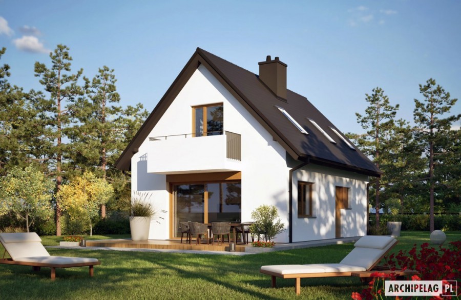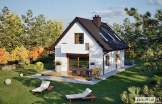 Charakterystyka: Dom parterowy z poddaszem użytkowym, niepodpiwniczonyPrzeznaczenie: Dom dla 3-4-osobowej rodziny Technologia i konstrukcja:Ściany zewnętrzne: murowane, dwuwarstwowe, beton komórkowy firmy H+H 24 cm, ocieplenie styropian Termo Organika 20 cmŚciany wewnętrzne: nośne i działowe murowane, beton komórkowy firmy H+H 24 cm i 12 cmStrop: międzypiętrowy gęstożebrowy TerivaDach: konstrukcja drewniana, ocieplenie wełna mineralna Isover 30 cm, dachówka ceramiczna płaska Bergamo firmy RöbenSchody: schody wewnętrzne drewnianeRozwiązania instalacyjne:Ogrzewanie: kocioł gazowy kondensacyjny firmy Viessmann, rozprowadzenie ciepła: grzejniki firmy PurmoWentylacja: grawitacyjnaOZE: kolektory słoneczne firmy Viessmann Dodatkowo: stacja uzdatniania wody firmy ViessmannWykończenie:Elewacje: tynk cienkowarstwowy mineralny w kolorze białym TO-PA001 z palety firmy Termo Organika, okładzina drewniana w poziomym układzie desekStolarka: drewniana, PVC lub aluminiowa, drzwi tarasowe podnoszono-przesuwne typu HS, drzwi wejściowe firmy HörmannOkna połaciowe: ozwiązania technologiczne i wyłaz dachowy firmy VELUX Pobierz ekspercki poradnik VELUX i dowiedz się jak wybrać okna dachoweOtoczenie: kostka betonowa i płyty tarasowe firmy Libet, system tarasowy ProDeck - deska kompozytowa Terra w kolorze orzechWersje - zapytaj o dostępność: - odbicie lustrzane Wszystkie wersje domów możliwe w dwóch standardach/wariantach instalacyjnych: – ENERGO: kocioł gazowy kondensacyjny, grzejniki, wentylacja grawitacyjna, OZE: kolektory słoneczne – ENERGO PLUS: pompa ciepła, ogrzewanie podłogowe, wentylacja mechaniczna, OZE: system solarny lub panele fotowoltaiczne Istnieją techniczne możliwości wykonania zmian: - podpiwniczenia budynku - wykonania budynku w technologii szkieletowej - dokonania zmian funkcjonalnych wg indywidualnych wymagań