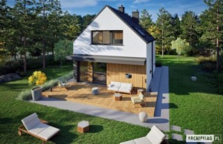 Charakterystyka: Dom parterowy z poddaszem użytkowym, niepodpiwniczony Przeznaczenie: Dom dla 2-4-osobowej rodziny Technologia i konstrukcja: Ściany zewnętrzne: murowane, dwuwarstwowe, beton komórkowy firmy H+H 24 cm, ocieplenie styropian Termo Organika 20 cm Ściany wewnętrzne: nośne i działowe murowane, beton komórkowy firmy H+H 24 cm i 12 cm Strop: międzypiętrowy gęstożebrowy Teriva Dach: konstrukcja drewniana, ocieplenie wełna mineralna Isover 30 cm, blacha na rąbek stojący Schody: schody wewnętrzne drewnianeRozwiązania instalacyjne: Ogrzewanie: kocioł gazowy kondensacyjny firmy Viessmann, rozprowadzenie ciepła: grzejniki firmy Purmo Wentylacja: grawitacyjna OZE: kolektory słoneczne firmy Viessmann Wykończenie: Elewacje: tynk cienkowarstwowy mineralny w kolorze białym TO-PA 001 i grafitowym TO-GY-015 z palety firmy Termo Organika, okładzina drewniana w pionowym układzie desekStolarka: drewniana, PVC lub aluminiowa, drzwi tarasowe podnoszono-przesuwne typu HS, drzwi wejściowe firmy Hörmann, rolety zewnętrzne w systemie QuadBox firmy BeCleverOkna połaciowe: rozwiązania technologiczne i wyłaz dachowy firmy VELUX Pobierz ekspercki poradnik VELUX i dowiedz się jak wybrać okna dachowe Otoczenie: kostka betonowa i płyty tarasowe firmy Libet, system tarasowy ProDeck - deska kompozytowa Terra w kolorze orzechWersje - zapytaj o dostępność: - Mini 16 w. I – podobny układ funkcji, kalenica równoległa do drogi, inna propozycja wykończenia elewacji - odbicie lustrzane do każdej wersjiWszystkie wersje domów możliwe w dwóch standardach/wariantach instalacyjnych: - ENERGO: kocioł gazowy kondensacyjny, grzejniki, wentylacja grawitacyjna, OZE: kolektory słoneczne - ENERGO PLUS: pompa ciepła, ogrzewanie podłogowe, wentylacja mechaniczna, OZE: kolektory słoneczne lub panele fotowoltaiczneIstnieją techniczne możliwości wykonania zmian: - podpiwniczenia budynku - wykonania budynku w technologii szkieletowej - dokonania zmian funkcjonalnych wg indywidualnych wymagań Inwestora