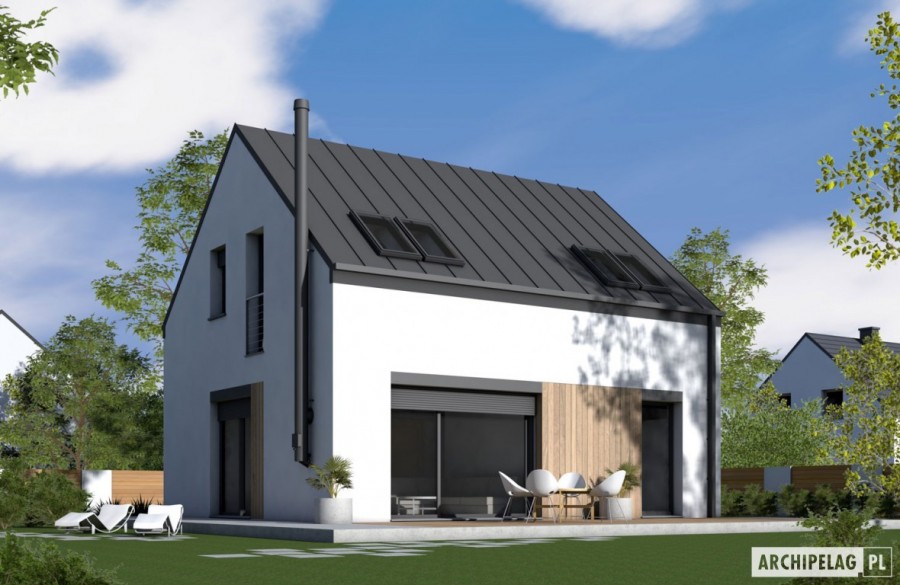 Charakterystyka: Dom parterowy z poddaszem użytkowym, niepodpiwniczony Przeznaczenie: Dom dla 2-4-osobowej rodziny Technologia i konstrukcja: Ściany zewnętrzne: murowane, dwuwarstwowe, beton komórkowy firmy H+H 24 cm, ocieplenie styropian Termo Organika 20 cm Ściany wewnętrzne: nośne i działowe murowane, beton komórkowy firmy H+H 24 cm i 12 cm Strop: międzypiętrowy gęstożebrowy Teriva Dach: konstrukcja drewniana, ocieplenie wełna mineralna Isover 30 cm, blacha na rąbek stojący Schody: schody wewnętrzne drewnianeRozwiązania instalacyjne: Ogrzewanie: kocioł gazowy kondensacyjny firmy Viessmann, rozprowadzenie ciepła: grzejniki firmy Purmo Wentylacja: grawitacyjna OZE: kolektory słoneczne firmy Viessmann Wykończenie: Elewacje: tynk cienkowarstwowy mineralny w kolorze białym TO-PA 001 i grafitowym TO-GY-015 z palety firmy Termo Organika, okładzina drewniana w pionowym układzie desek Stolarka: drewniana, PVC lub aluminiowa, drzwi tarasowe podnoszono-przesuwne typu HS aluminiowo-drewniane Innoview firmy Fakro,, drzwi wejściowe firmy Hörmann, rolety zewnętrzne w systemie QuadBox firmy BeClever Okna połaciowe: rozwiązania technologiczne firmy FAKRO Otoczenie: kostka betonowa i płyty tarasowe firmy Libet, system tarasowy ProDeck - deska kompozytowa Terra w kolorze orzechWersje - zapytaj o dostępność: - odbicie lustrzane do każdej wersjiWszystkie wersje domów możliwe w dwóch standardach/wariantach instalacyjnych: - ENERGO: kocioł gazowy kondensacyjny, grzejniki, wentylacja grawitacyjna, OZE: kolektory słoneczne - ENERGO PLUS: pompa ciepła, ogrzewanie podłogowe, wentylacja mechaniczna, OZE: kolektory słoneczne lub panele fotowoltaiczne Istnieją techniczne możliwości wykonania zmian: - podpiwniczenia budynku - wykonania budynku w technologii szkieletowej - dokonania zmian funkcjonalnych wg indywidualnych wymagań Inwestora