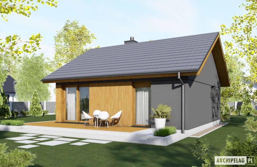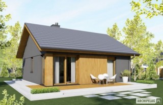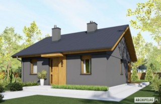 Charakterystyka: Dom parterowy, niepodpiwniczony Przeznaczenie: Dom dla 2-3-osobowej rodziny Technologia i konstrukcja: Ściany zewnętrzne: murowane dwuwarstwowe, betom komórkowy firmy Solbet 24 cm, ocieplenie styropianem Termo Organika 20 cmŚciany wewnętrzne: ścianki działowe murowane, beton komórkowy Solbet 12 cmStrop: drewniany (dolny pas wiązara prefabrykowanego), ocieplenie wełna mineralna Isover 30 cm, Dach: konstrukcja drewniana, wiązary prefabrykowane firmy Mitek, dachówka ceramiczna płaska, np. Bergamo firmy Röben, Rozwiązania instalacyjne:Ogrzewanie: kocioł gazowy kondensacyjny firmy Viessmann, rozprowadzenie ciepła: grzejniki firmy PurmoWentylacja: grawitacyjnaOZE: kolektory słoneczne firmy ViessmannDodatkowo: stacja uzdatniania wody firmy Viessmann Wykończenie: Elewacje: tynk cienkowarstwowy mineralny w kolorze białym TO GY023 z palety firmy Termo Organika, okładzina drewniana w pionowym układzie desek Stolarka: drewniana, PVC lub aluminiowa, rolety zewnętrzne w systemie QuadBox firmy BeClever, drzwi wewnętrzne i wejściowe firmy HörmannOtoczenie: kostka betonowa i płyty tarasowe, system tarasowy ProDeck - deska kompozytowa Terra w kolorze orzechWersje w serii Mini 19 - zapytaj o dostępność: - Mini 19 (wersja A) – inne wykończenie elewacji, dach z kalenicą prostopadłą do frontu. - wszystkie wersje o takim samym układzie funkcji - odbicie lustrzane do każdej wersjiWszystkie wersje domów możliwość w dwóch standardach/wariantach instalacyjnych: - ENERGO: kocioł gazowy kondensacyjny, grzejniki, wentylacja grawitacyjna, OZE: kolektory słoneczne - ENERGO PLUS: pompa ciepła, ogrzewanie podłogowe, wentylacja mechaniczna, OZE: panele fotowoltaiczne Istnieją techniczne możliwości wykonania zmian: - podpiwniczenia budynku - wykonania budynku w technologii szkieletowej - dokonania zmian funkcjonalnych wg indywidualnych wymagań
