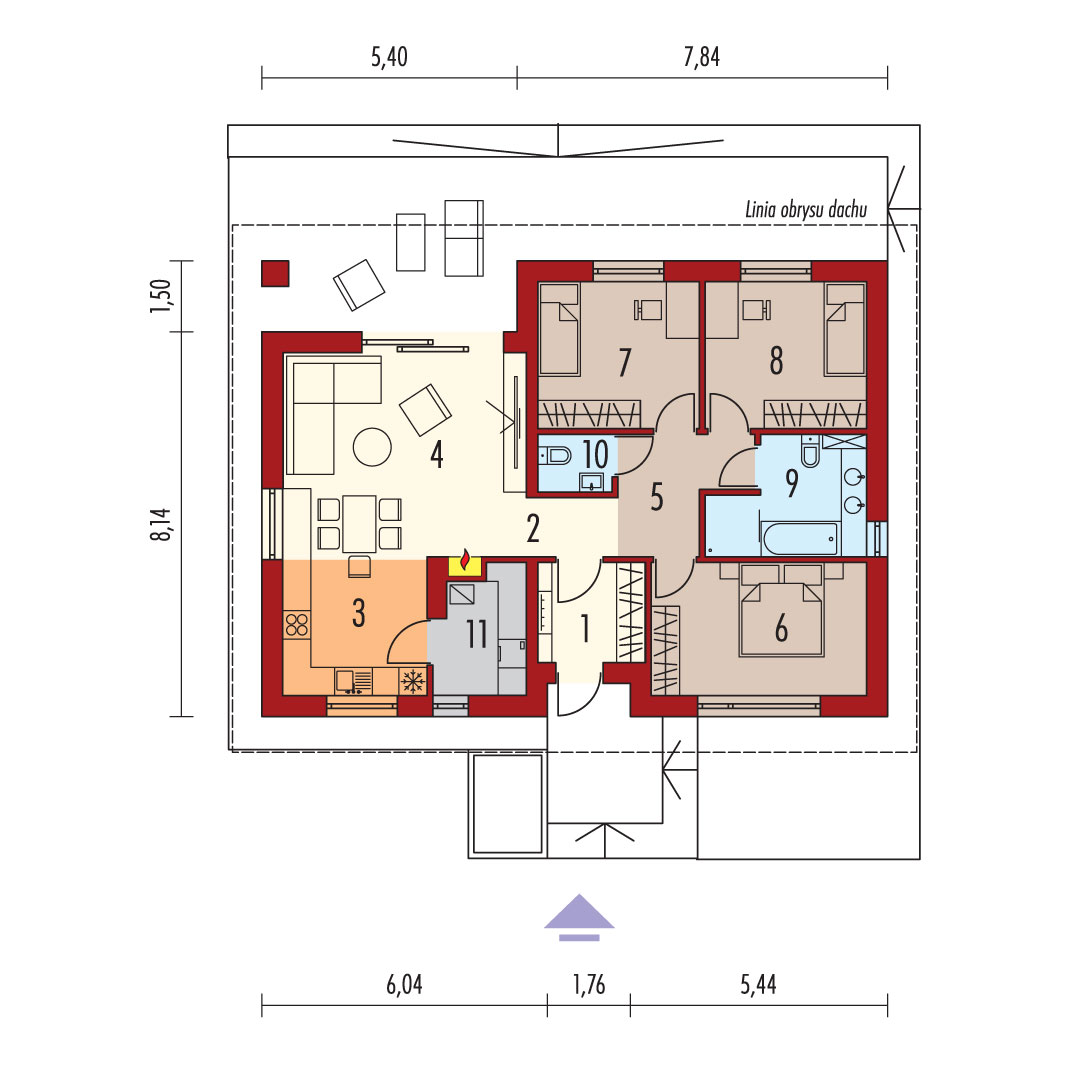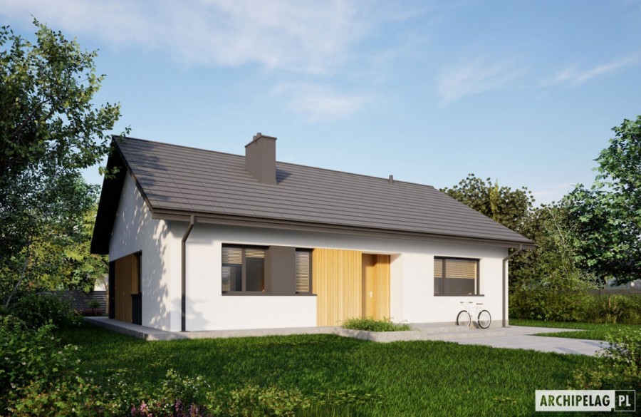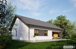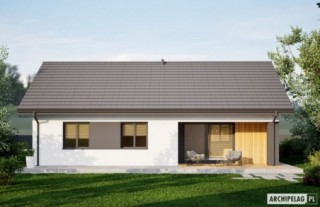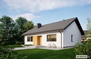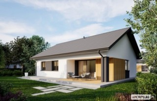 Charakterystyka: Dom parterowy, niepodpiwniczonyPrzeznaczenie: Dom dla 3-4-osobowej rodziny Technologia i konstrukcja:Ściany zewnętrzne: murowane, dwuwarstwowe, beton komórkowy firmy Solbet 24 cm, ocieplenie styropian Termo Organika 20 cmŚciany wewnętrzne: nośne i działowe murowane, beton komórkowy firmy Solbet 24 cm i 12 cmStrop: strop gęstożebrowy Teriva, ocieplenie wełna mineralna firmy Isover 30 cmDach: konstrukcja drewniana, dachówka ceramiczna płaska Bergamo firmy RöbenRozwiązania instalacyjne:Ogrzewanie: kocioł gazowy kondensacyjny firmy Viessmann, rozprowadzenie ciepła: grzejniki firmy PurmoWentylacja: grawitacyjnaOZE: kolektory słoneczne firmy ViessmannDodatkowo: stacja uzdatniania wody firmy Viessmann Wykończenie:Elewacje: tynk cienkowarstwowy mineralny w kolorze białym TO-PA 001 z palety firmy Termo Organika, okładzina drewniana,Stolarka: drewniana, PVC lub aluminiowa, drzwi tarasowe podnoszono-przesuwne typu HS aluminiowo-drewniane Innoview firmy Fakro, drzwi wejściowe i wewnętrzne firmy HörmannOtoczenie: kostka betonowa i płyty tarasowe firmy Libet, system tarasowy ProDeck - deska kompozytowa Terra w kolorze orzech Wszystkie wersje domów możliwe w dwóch standardach/wariantach instalacyjnych: - ENERGO: kocioł gazowy kondensacyjny, grzejniki, wentylacja grawitacyjna, OZE: kolektory słoneczne - ENERGO PLUS: pompa ciepła, ogrzewanie podłogowe, wentylacja mechaniczna, OZE: kolektory słoneczne lub panele fotowoltaiczne Istnieją techniczne możliwości wykonania zmian: - podpiwniczenia budynku - zmiany kąta nachylenia dachu- wykonania budynku w technologii szkieletowej- zbliźniaczenia lub wykonania domu dwulokalowego- dokonania zmian funkcjonalnych wg indywidualnych wymagań