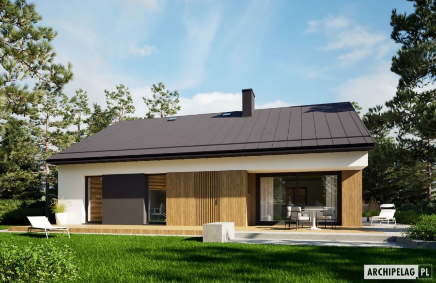 Charakterystyka: Dom parterowy, niepodpiwniczony Przeznaczenie: Dom dla 3-4-osobowej rodziny Technologia i konstrukcja:Ściany zewnętrzne: murowane, dwuwarstwowe, beton komórkowy firmy Solbet 24 cm, ocieplenie styropian Termo Organika 20 cmŚciany wewnętrzne: nośne i działowe murowane, beton komórkowy firmy Solbet 24 cm i 12 cmStrop: pas dolny wiązara stanowi konstrukcję, sufit podwieszony Rigips, ocieplenie wełna mineralna Isover 30 cmDach: blacha na rąbek stojący, system rynnowy Galeco DACHRYNNA, wiązary dachowe prefabrykowane firmy MiTekRozwiązania instalacyjne:Ogrzewanie: kocioł gazowy kondensacyjny firmy Viessmann, rozprowadzenie ciepła: grzejniki firmy PurmoWentylacja: grawitacyjnaOZE: kolektory słoneczne firmy ViessmannDodatkowo: stacja uzdatniania wody firmy Viessmann Wykończenie:Elewacje: tynk cienkowarstwowy mineralny w kolorze białym TO-PA 001 z palety firmy Termo Organika okładzina drewnianaStolarka: aluminiowa firmy Reynaers Aluminium, drzwi wejściowe oraz wewnętrzne firmy HörmannOkna połaciowe: świetlik dachowy firmy Velux,Otoczenie: kostka betonowa i płyty tarasowe firmy Libet, system tarasowy ProDeck - deska kompozytowa Terra w kolorze orzechWersje domów w serii Mini 24 – zapytaj o dostępność:-Mini 24 – wersja podstawowa, kocioł gazowy kondensacyjny, grzejniki, wentylacja grawitacyjna, OZE: kolektory słoneczne, inne wykończenie elewacji-Mini 24 PLUS - instalacje energooszczędne: pompa ciepła, ogrzewanie podłogowe, wentylacja mechaniczna z rekuperacją, kolektory słoneczne lub panele fotowoltaiczne, inne wykończenie elewacji Istnieją techniczne możliwości wykonania zmian: - podpiwniczenia budynku - zmiany kąta nachylenia dachu i adaptacji poddasza na cele mieszkalne - wykonania budynku w technologii szkieletowej - zbliźniaczenia lub wykonania domu dwulokalowego - wykonania zabudowy szeregowej - dokonania zmian funkcjonalnych wg indywidualnych wymagań