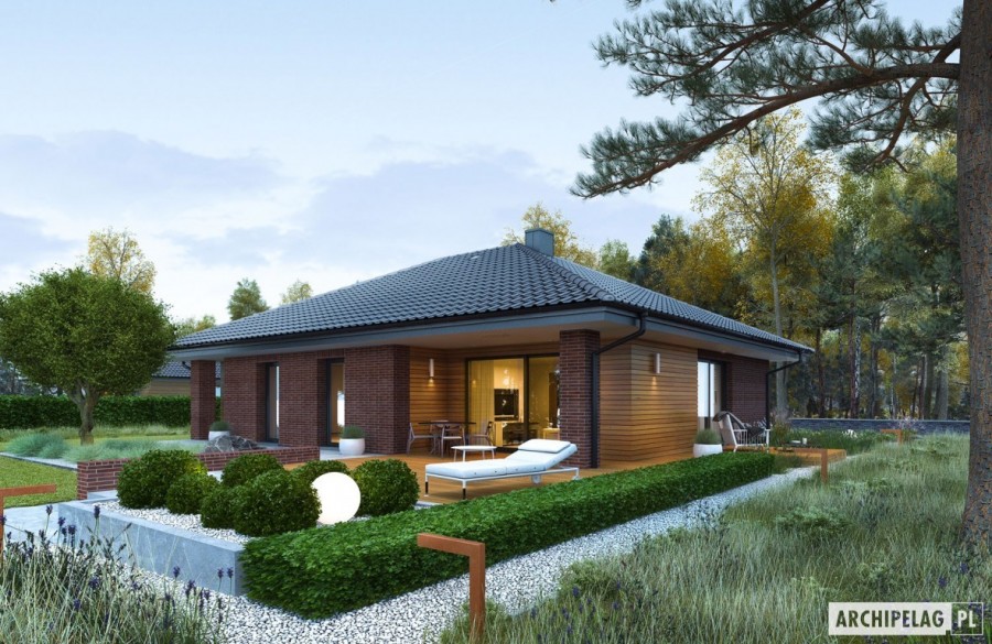 W projekcie zastosowano systemy zabudowy ścian działowych i sufitów podwieszonych Rigips. Więźba dachowa w systemie prefabrykacji drewnianej w systemie płytki kolczastej Mitek. Charakterystyka: Dom parterowy, niepodpiwniczony Przeznaczenie: Dom dla 2-4-osobowej rodziny Technologia i konstrukcja: Ściany zewnętrzne: murowane, dwuwarstwowe, beton komórkowy firmy Solbet 24 cm, ocieplenie wełna mineralna Fasoterm 35 i Super-Vent gr. 20 cm Ściany wewnętrzne: ścianki działowe w systemie suchej zabudowy Rigips 12 cm Strop: pas dolny wiązara stanowi konstrukcję, sufit podwieszony Rigips, ocieplenie wełna mineralna Isover Super-Mata 30 cm Dach: wiązary dachowe prefabrykowane Mitek, dachówka ceramiczna firmy RöbenRozwiązania instalacyjne:Ogrzewanie: kocioł gazowy kondensacyjny firmy Viessmann, rozprowadzenie ciepła: grzejniki firmy PurmoWentylacja: grawitacyjna OZE: kolektory słoneczne firmy ViessmannWykończenie: Elewacje: okładzina z płytek klinkierowych firmy Röben typ Darwin czerwonobrązowa gładka, system elewacji wentylowanej: deski włóknocementowe Cedral w kolorze drewnopodobnym CL104 jasny dąb Stolarka: drewniana, PVC lub aluminiowa, rolety zewnętrzne w systemie QuadBox firmy BeClever, drzwi wejściowe firmy Hörmann Otoczenie: kostka betonowa i płyty tarasowe firmy Libet, system tarasowy ProDeck - deska kompozytowa Terra w kolorze orzech Okna dachowe: wyłaz i świetliki dachowe firmy Velux Inne: dom spełnia standardy Grupy Saint-Gobain; marka Isover, Rigips i Weber zapewniają najwyższą jakość wbudowanych produktów: systemy ociepleń, okładziny ścienne i sufitowe, paroizolacje, systemy podłogowe, zaprawy, kleje, hydroizolacjeWersje domów w serii Mini 4 - zapytaj o dostępność: - Mini 4 – wersja podstawowa, 3 sypialnie, dach czterospadowy - Mini 4 (wiązary) – układ funkcji taki sam jak w wersji podstawowej, system suchej zabudowy ścian działowych Rigips, wiązary prefabrykowane, rozwiązania materiałowo-technologiczne Grupy Saint-Gobain - Mini 4 w. II – układ funkcji podobny do wersji podstawowej (inny układ otworów okiennych i drzwiowych), 3 sypialnie, zadaszony taras ogrodowy, dach dwuspadowy z okapami - Mini 4 w. III – układ funkcji podobny do wersji podstawowej (inny układ otworów okiennych i drzwiowych),4 sypialnie, zadaszony taras ogrodowy, dach dwuspadowy bez okapów - Mini 4 MODERN – układ funkcji podobny do wersji podstawowej (zmiany w strefie wejściowej, kuchni, kotłowni, inny układ otworów okiennych i drzwiowych), 3 sypialnie, dach płaski - Mini 4 PLUS – instalacje energooszczędne firmy Viessmann: pompa ciepła, wentylacja mechaniczna z rekuperacją, system fotowoltaiczny oraz ogrzewanie podłogowe firmy Purmo - Mini 4 PLUS reco – instalacje energooszczędne firmy Vaillant: pompa ciepła, wentylacja mechaniczna z rekuperacją, system fotowoltaiczny oraz ogrzewanie podłogowe firmy Purmo- wszystkie wersje o podobnym układzie funkcji oraz z inną propozycją wykończenia elewacji - wszystkie wersje z trzema wariantami garaży: bez garażu, z garażem jedno- i dwustanowiskowym - odbicie lustrzane do każdej wersjiWszystkie wersje domów możliwe w dwóch standardach/wariantach instalacyjnych: - ENERGO: kocioł gazowy kondensacyjny, grzejniki, wentylacja grawitacyjna, OZE: kolektory słoneczne - ENERGO PLUS: pompa ciepła, ogrzewanie podłogowe, wentylacja mechaniczna, OZE: system fotowoltaicznyIstnieje techniczna możliwość: - podpiwniczenia budynku - zmiany kąta nachylenia dachu do 30º oraz adaptacji poddasza na strych - wykonania budynku w technologii szkieletowej