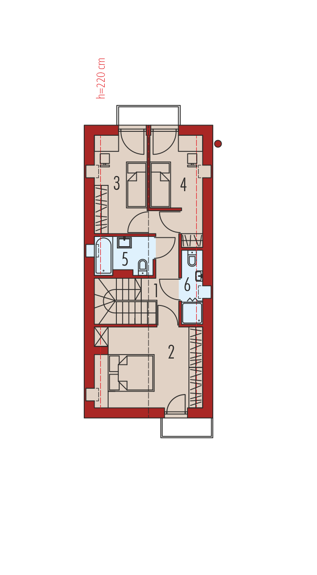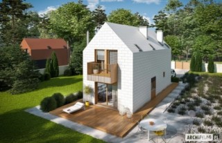 Charakterystyka: Dom z poddaszem użytkowym, niepodpiwniczonyPrzeznaczenie: Dom dla 2-4-osobowej rodzinyTechnologia i konstrukcja:Ściany zewnętrzne: murowane, dwuwarstwowe, beton komórkowy firmy H+H 24 cm, ocieplenie styropian Termo Organika 20 cmŚciany wewnętrzne: ścianki działowe murowane, beton komórkowy firmy H+H 24 cm i 12 cmStrop międzypiętrowy: gęstożebrowy TerivaDach: konstrukcja drewniana, ocieplenie wełna mineralna Isover 30 cm, pokrycie z małoformatowych włóknocementowych płytek dachowych firmy CedralInne: schody wewnętrzne drewnianeRozwiązania instalacyjne:Ogrzewanie: kocioł gazowy kondensacyjny firmy Viessmann, rozprowadzenie ciepła: grzejniki firmy PurmoWentylacja: grawitacyjnaDodatkowo: stacja uzdatniania wody firmy ViessmannOZE: kolektory słoneczneWykończenie:Elewacje: małoformatowe włóknocementowe płytki elewacyjne i dachowe firmy Cedral w kolorze białym, okładzina drewniana w pionowym układzie desek Stolarka: drewniana, PVC lub aluminiowa, drzwi tarasowe podnoszono-przesuwne typu HS aluminiowo-drewniane Innoview firmy Fakro, rolety zewnętrzne w systemie QuadBox firmy BeClever, drzwi wejściowe firmy HörmannOkna połaciowe: rozwiązania technologiczne i wyłaz dachowy firmy FakroOtoczenie: kostka betonowa i płyty tarasowe firmy Libet, system tarasowy ProDeck - deska kompozytowa Terra w kolorze orzechWersje domów w serii Moniczka - zapytaj o dostępność: - Moniczka – wersja podstawowa, dom piętrowy, 2 sypialnie, dach z okapami o kącie nachylenia 30° - Moniczka II (wersja A) – podobny układ funkcji, dłuższy budynek, dom z poddaszem użytkowym, 3 sypialnie i 2 łazienki na poddaszu, dach z okapami o kącie nachylenia 45° - Moniczka II (wersja B) – inna propozycja wykończenia materiałowo-kolorystycznego elewacji - Moniczka II (wersja C,D) – inna propozycja wykończenia materiałowo-kolorystycznego elewacji, dach bez okapów - Moniczka III ENERGO PLUS reco - układ funkcji jak w wersji II, dłuższy i szerszy budynek, dom z poddaszem użytkowym, 3 sypialnie i 2 łazienki na poddaszu, dach bez okapów o kącie nachylenia 45°, energooszczędne instalacje firmy Vaillant - Moniczka IV (wersja A) – podobny układ funkcji, inna propozycja wykończenia materiałowo-kolorystycznego elewacji, dach bez okapów o kącie nachylenia 45° - Moniczka IV (wersja B) – podobny układ funkcji jak w wersji A, inna propozycja wykończenia materiałowo-kolorystycznego elewacji, dach bez okapów o kącie nachylenia 45° - odbicie lustrzane do wszystkich wersjiWszystkie wersje domów możliwe w dwóch standardach/wariantach instalacyjnych:- ENERGO: piec gazowy kondensacyjny, grzejniki, wentylacja grawitacyjna- ENERGO PLUS: pompa ciepła, ogrzewanie podłogowe, wentylacja mechaniczna, dodatkowo panele fotowoltaiczneIstnieją techniczne możliwości wykonania zmian:- podpiwniczenia budynku- wykonania budynku w technologii szkieletowej- dokonania zmian funkcjonalnych wg indywidualnych wymagań