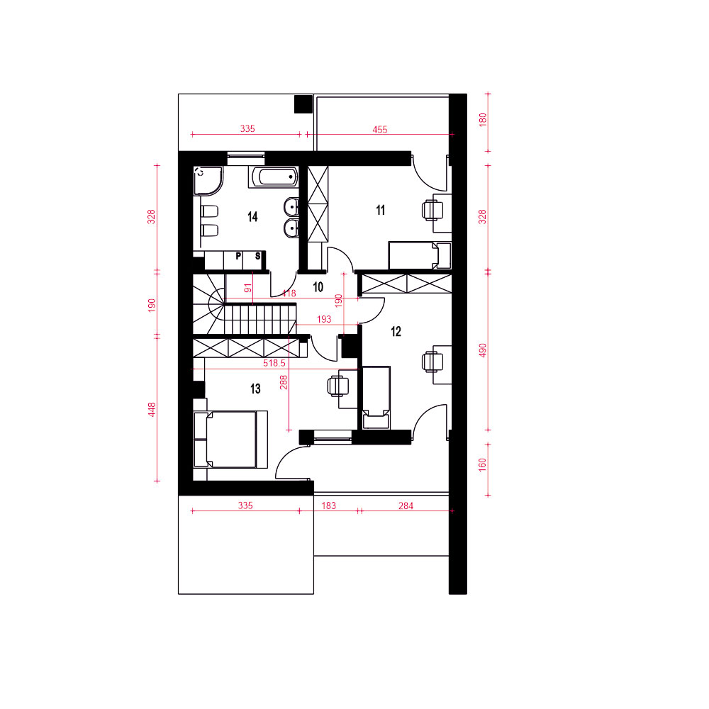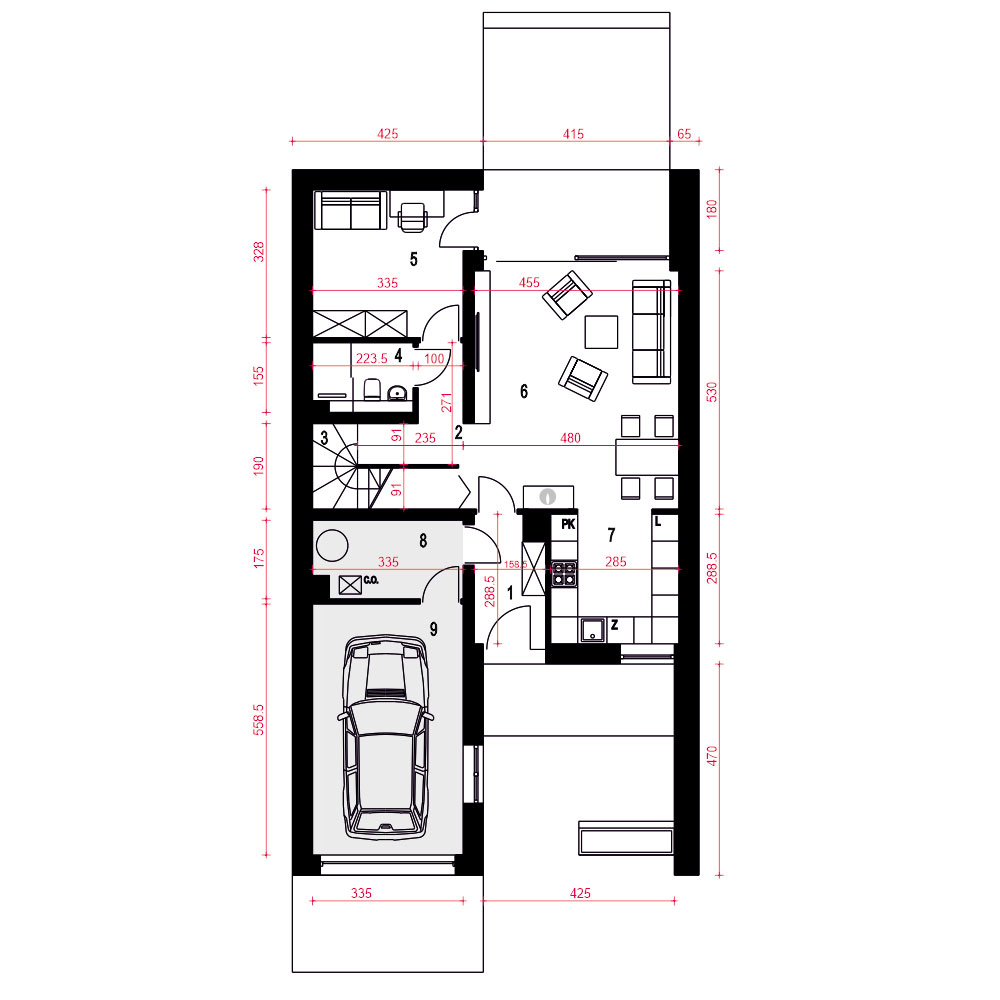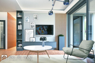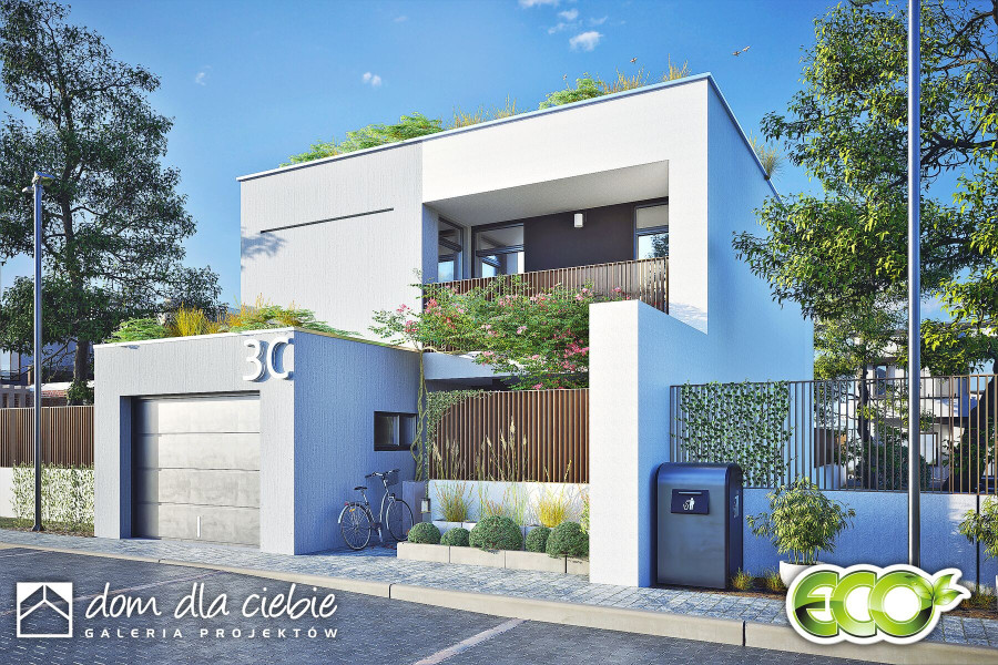 Talia to nowoczesny, funkcjonalny dom rodzinny, dostępny jako wolnostojący lub w zabudowie bliźniaczej. Jego kompaktowa forma pozwala na posadowienie na wąskich działkach, co czyni go atrakcyjnym dla deweloperów. Parter obejmuje wiatrołap z wejściem do pomieszczenia gospodarczego i garażu, garderobę pod schodami, małą łazienkę, pokój oraz przestronną strefę dzienną z kuchnią, jadalnią i salonem. Garaż łączy się z częścią mieszkalną przez pomieszczenie techniczne. Na piętrze znajdują się trzy sypialnie, duża łazienka oraz wnęki na pralkę i suszarkę. Każda sypialnia ma dostęp do balkonu. Zielone tarasy nad garażem i pokojem na parterze podkreślają nowoczesny, ekologiczny charakter domu, który doskonale wpisuje się w estetykę współczesnych osiedli.fundamenty: BETONOWE ściany zewnętrzne: POROTHERM+STYROPIAN TERMO ORGANIKA ściany wewnętrzne: POROTHERM, GK rodzaj stropu: MONOLITYCZNY elewacje: TYNK STRUKTURALNY pokrycie dachu: BITUMICZNE/ZIELONY.