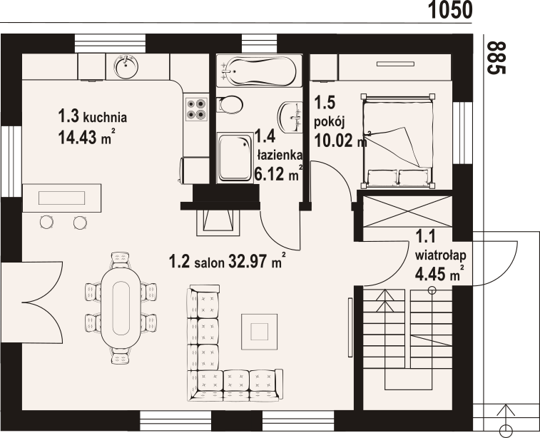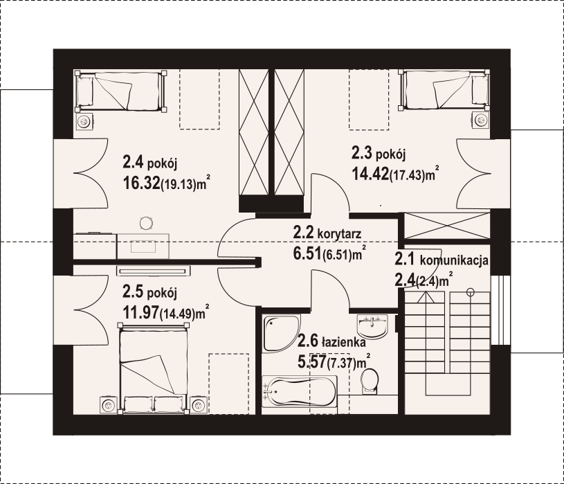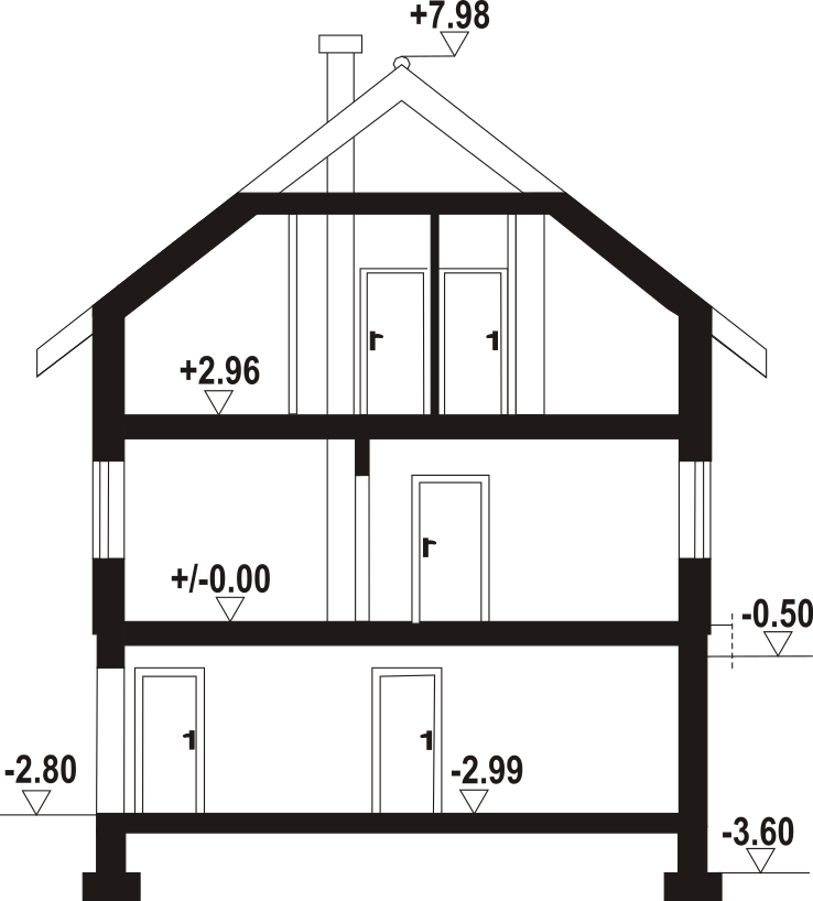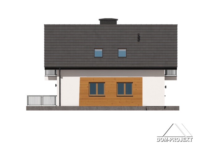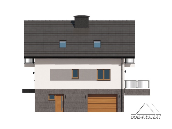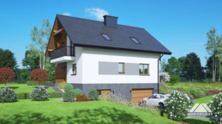 Projekt domu murowanego, z poddaszem użytkowym i pełnym podpiwniczeniem. Sercem domu jest parter z dużym salonem z kominkiem oraz otwartą, wygodną kuchnią z wyspą. W projekcie przewidziano 4 sypialnie (3 na poddaszu+1 na parterze) oraz dwie łazienki. W podpiwniczeniu garaż, łazienka gospodarcza i kotłownia. Prosta bryła budynku oraz dach dwuspadowy wpływają na szybszą budowę oraz pomagają obniżyć koszty eksploatacji, a podwyższyć komfort użytkowania.