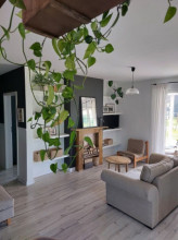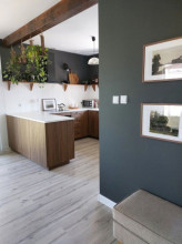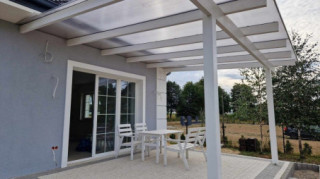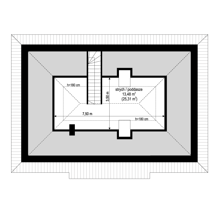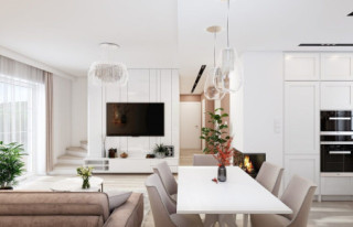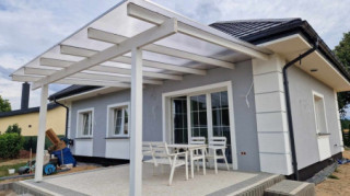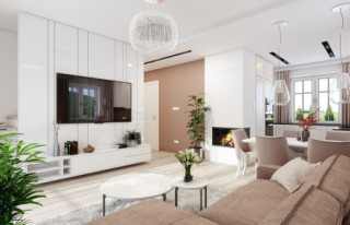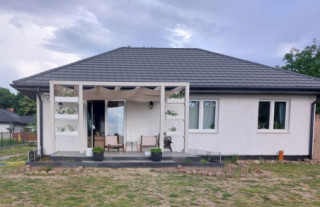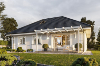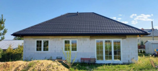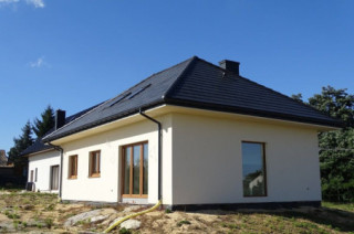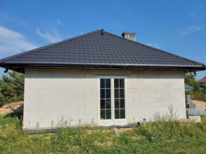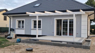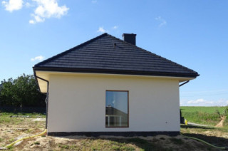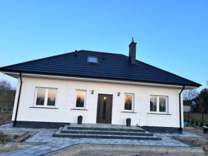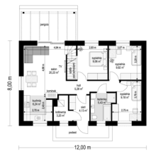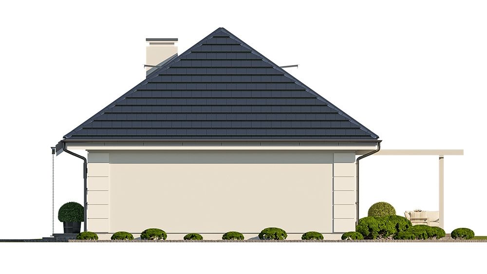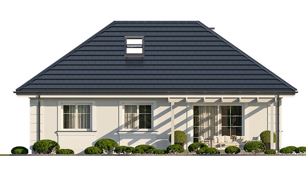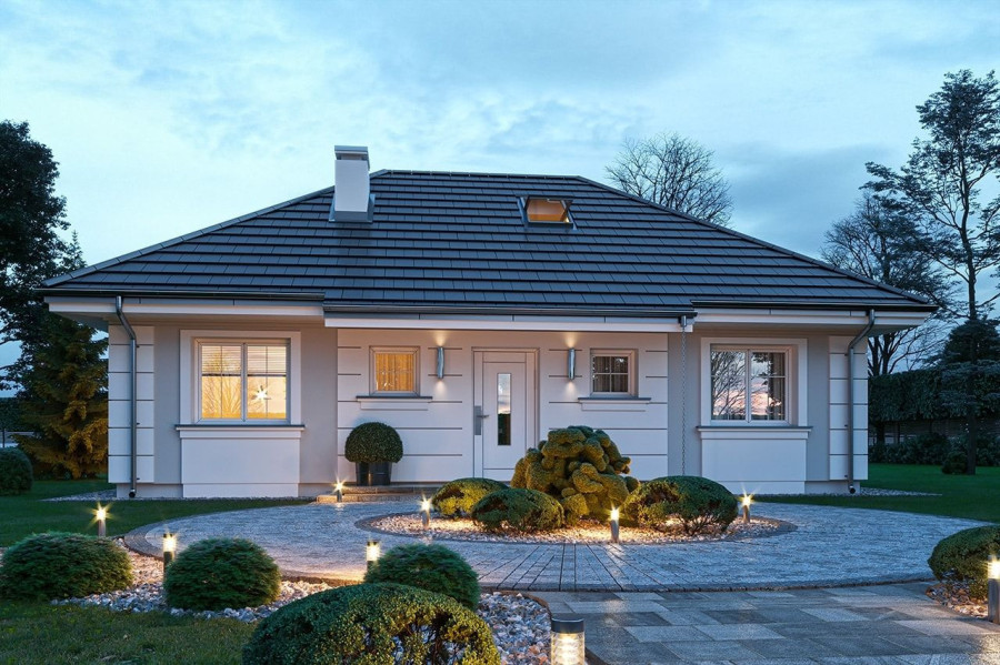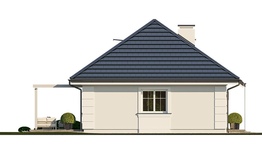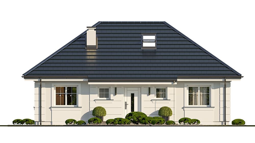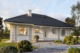 Projekt domu Sensowny 4 to niewielki dom jednorodzinny z serii „Sensownych” z oferty Mg Projekt. Jest to wyjątkowy wariant, zaprojektowany w dworkowo – rezydencyjnej stylistyce, z ozdobnymi detalami wokół okien, drzwi i narożników elewacji, dzięki czemu domek zyskuje oryginalny i bardzo elegancki wygląd. Prostokątną bryłę budynku o wymiarach 12x 8 m przykryto czterospadowym dachem, wieńczącym rzut z funkcjonalnym wnętrzem dla 2-4osobowej rodziny. „Sensowny 4” to doskonała propozycja na wygodne i niedrogie mieszkanie na własnej działce z ogrodem i świetne połączenie prostoty z designerskim sznytem.Dom jest łatwy, tani w budowie i będzie niedrogi w późniejszej eksploatacji. Architektura budynku utrzymana jest w stylistyce nawiązującej do podmiejskich rezydencji – to taki mały i przytulny „dworek – pałacyk”. Dom – cukierek. Symetria elewacji, właściwe proporcje i zastosowane detale tworzą razem szykowną i bardzo miłą dla oka całość. Wejście do domu podkreślono wysuniętym zadaszeniem zakrywającym podest wejściowy. Drzwi wejściowe zaakcentowane zostały wypukłym boniowaniem ściany i bocznymi okienkami.Od strony ogrodu królują szerokie drzwi balkonowe, otwierające przestrzeń pokoju dziennego na taras i otaczający dom ogród, kryjące się pod piękną pergolą - zadaszeniem.Okna w domu ozdobiono opaskami i ozdobnymi parapetami z boniowaniem. Wnętrze podzielono na przestrzeń dzienną – z salonem, kuchnią i holem, oraz na część nocną – z trzema sypialniami i łazienką. Z przedsionka mamy dostęp do kotłowni, której komin połączony jest z przewodem kominka salonu w jeden zestaw. Salon ma bardzo ładne ustawienie - ze ścianą telewizyjną i narożnym kominkiem widocznym z każdego miejsca. Mimo niedużej powierzchni, wnętrze domu jest bardzo wygodne, przestronne i funkcjonalne. Z salonu możemy też wejść ukrytymi za ścianą TV schodkami na strych, który można zaadaptować dość łatwo na poddasze. Konstrukcja budynku jest prosta i tania w budowie. Wszystkie prace murarskie i betoniarskie kończą się na poziomie wieńców nad ścianami parteru. Powyżej zaprojektowaliśmy układ drewnianych wiązarów dachowych, które stanowią konstrukcję zarówno stropu nad parterem jak i więźby dachowej. Takie rozwiązanie znakomicie przyspiesza i upraszcza budowę i - przede wszystkim - obniża koszty. Wiązary dachowe pozwalają oczywiście wykorzystać przestrzeń strychową nad parterem na domowy magazyn lub wariantowo na dodatkowe poddasze. W projekcie zastosowano bardzo dobre izolacje i nowoczesne instalacje, dzięki czemu dom jest energooszczędny i będzie tani w późniejszym utrzymaniu. „Sensowny 4” to bardzo dobra propozycja dla osób, które planują budowę ładnego stylowego domu, ale nie zamierzają wydać na niego fortuny i nie potrzebują wielkich powierzchni mieszkalnych. To doskonała propozycja dla osób podchodzących do budowy swojego domu w sposób pragmatyczny i rozsądny. Budowa „Sensownego 4” z pewnością będzie przyjemna. Zapraszamy !