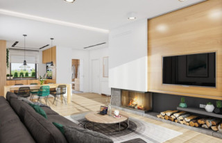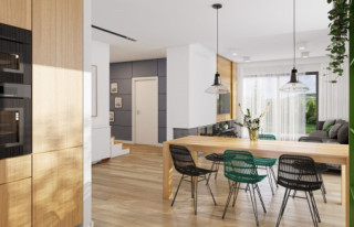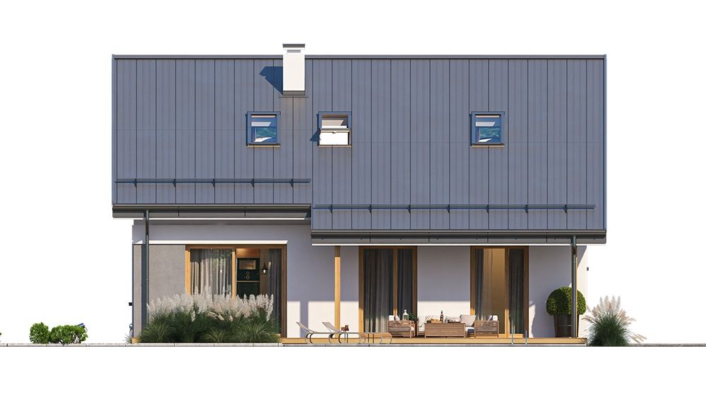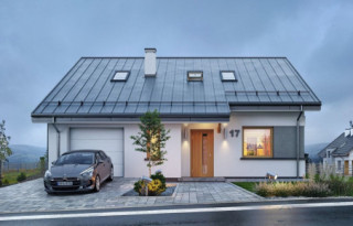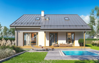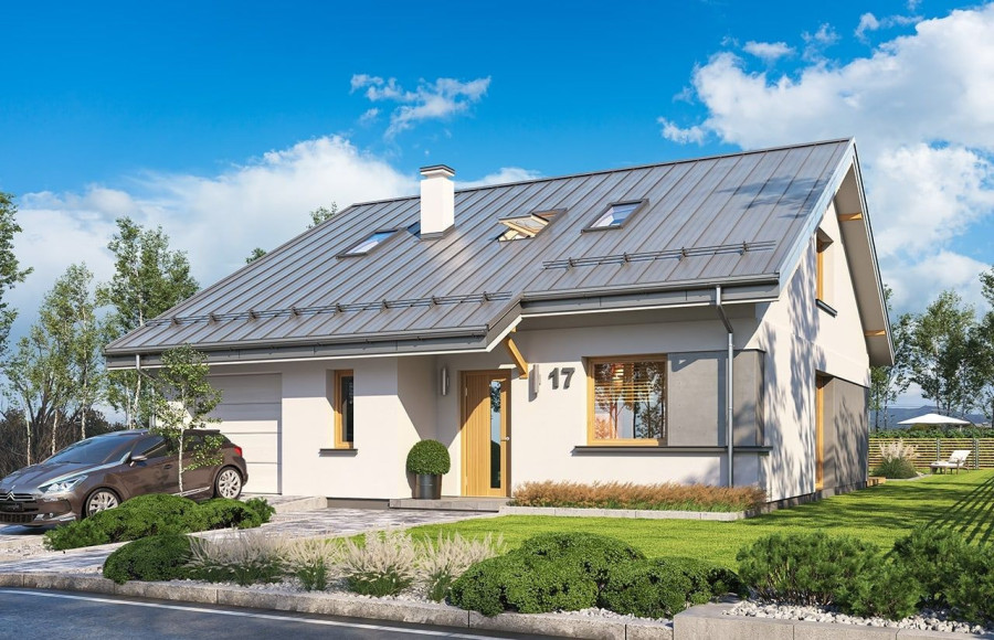 Projekt domu Ambitny jest to projekt domu dla 3- 5-osobowej rodziny, parterowy z poddaszem użytkowym, o prostej bryle - nieskomplikowany w budowie. Bryła budynku zbudowana jest na planie prostokąta, dom przykryty jest dwuspadowym dachem o kalenicy równoległej do elewacji frontowej. Konstrukcję budynku zaprojektowano z wykorzystaniem wiązarów prefabrykowanych, dzięki czemu budowa domu jest znacznie szybsza, łatwiejsza - i co najważniejsze - tańsza. Murowana część domu kończy się na wieńcach nad ścianami parteru, oraz na dwóch ścianach szczytowych poddasza. Pozostałą część konstrukcji stropu, ścianek kolankowych, oraz więźby dachowej stanowi układ drewnianych wiązarów ramowo -kratowych. Taka mieszana konstrukcja domu jest coraz częściej stosowana na budowach - jako nowoczesne i bardzo wydajne rozwiązanie. Architektura zewnętrza domu jest spokojna, bez przesadnej ekstrawagancji. Właściwe proporcje bryły, dobrze dobrane materiały i detale wykończeniowe dają domowi estetyczny, przyciągający wzrok wygląd. Dom doskonale łączy w sobie nowoczesność i tradycję. Wejście zaakcentowano narożnym podcieniem wejściowym. Od strony elewacji ogrodowej dom zdobią duże przeszklenia otwierające pokój dzienny na taras i ogród, oraz duże zadaszenie tarasu. Wnętrze budynku zaprojektowano w taki sposób, aby rodzina miała możliwość zamieszkać w nim najpierw na parterze, a potem w drugim etapie zagospodarować poddasze. Możliwość wykończenia wnętrza domu etapami jest bardzo dużym atutem projektu. Na parterze mam do dyspozycji dużą połączoną przestrzeń dzienną, składającą się z salonu, holu i kuchni. W oddzielonym narożniku domu mamy do dyspozycji dwa pokoje i łazienkę, oraz pralnię. Natomiast obok przedsionka wejściowego zlokalizowana jest kotłownia i garaż. Na poddaszu mamy dwa bardzo ładne pokoje i łazienkę - które mogą być wykończone w późniejszym etapie. Budynek ma bardzo prostą konstrukcję. Będzie szybki w budowie i niedrogi. Dom jest energooszczędny - doskonałe izolacje, zastosowane nowoczesne materiały i instalacje pozwolą uzyskać niskie koszty utrzymania budynku. Dom jest świetną propozycją dla rodzin budujących swój pierwszy dom, które są na początku drogi, z dziećmi które dopiero rosną. Dodatkowe rezerwowe poddasze daje zapas przestrzeni do wykorzystania na później. Dom doskonale sprawdzi się też dla osób starszych, do których przyjeżdżają dzieci i wnuki w gościnę. Zapraszamy https://www.mgprojekt.com.pl/
