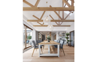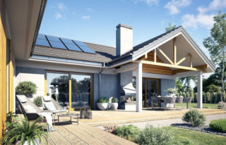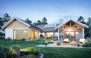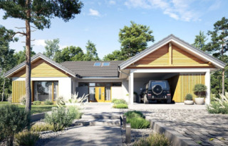 Projekt domu Hanka jest to projekt wyjątkowego parterowego domu jednorodzinnego z serii o nazwie ”Hanka”. Dom zaprojektowany jest na planie litery „H”, przykryty dwuspadowymi dachami, z całym programem użytkowym znajdującym się na jednej kondygnacji parteru. Forma budynku, układ funkcjonalny i rozmieszczenie pomieszczeń - wszystkie te elementy zostały zaprojektowane tak, aby zapewnić właścicielom maksymalny komfort i wygodę mieszkania. Architektura domu łączy w sobie związki z przyrodą, poszanowanie dla natury z nowoczesną formą architektoniczną. Dom zaprojektowano blisko ziemi, blisko ogrodu. Wnętrza są ściśle połączone z otaczającymi budynek tarasami, podcieniami, wiatami, podestami, rozszerzając wnętrze na działkę Inwestorów. Do domu wchodzimy przez szerokie reprezentacyjne drzwi wejściowe z naświetlami. Po bokach elewacji frontowej mamy ogromne okno kuchenne, oraz wygodną wiatę garażową. Od strony ogrodu głównym elementem kształtującym sylwetkę jest duże zadaszenie tarasu wsparte na słupach, z szerokimi przeszkleniami salonu. Dachy uformowane w kształt litery „H” urozmaicają bryłę domu i dodają jej uroku. Odpowiednio dobrane detale i materiały wykończeniowe pozwoliły stworzyć w efekcie przyjemną architekturę podmiejskiej komfortowej willi. Wnętrze podzielono na dwie części: jednoprzestrzenną część dzienną, z salonem, jadalnią i kuchnią, oraz cześć z pokojami sypialnymi. Do domu wchodzimy przez oszklony przedsionek wprost do wielkiego holu, który pełni również funkcję pokoju stołowego - jadalni i otwiera się szerokim oknem na taras i otaczający dom ogród. Pomieszczenie ma otwarty do czubka dachu sufit, z dodatkowym doświetleniem oknami połaciowymi. Dalej na lewo przechodzimy do wygodnego salonu ze ścianą telewizyjną i ścianą z kominkiem, z otwarciem przestrzennym sufitu, oraz otwarciem na zadaszenie tarasu. Dopełnieniem wnętrza jest luksusowa piękna kuchnia z aż dwiema dużymi wyspami, z dużą ilością blatów roboczych i pełnych zabudów. Do kuchni możemy dostać się też przez spiżarnię do przedsionka i wygodnego car-portu - wiaty garażowej. Wiata może być pojedyncza z dodatkowym pomieszczeniem gospodarczym, lub podwójna - wedle decyzji Klienta. W części nocnej domu mamy różny układ pokoi w różnych wersjach wariantowych projektu „Hanka”. W Hance 1 mamy: przeszklony, połączony wizualnie z wnętrzem dziennym pokój do pracy - gabinet, dwie sypialnie dziecięce z wygodną łazienką, oraz apartament rodziców z dwiema garderobami – jej i jego, oraz łazienką. Wnętrze jest superkomfortowe i zapewni optymalne warunki mieszkania nawet najbardziej wymagającemu Inwestorowi. Dom mimo rozbudowanej bryły ma bardzo prostą konstrukcję, będzie dość łatwy w budowie, a dzięki zastosowanym świetnym izolacjom i nowoczesnym instalacjom budynek będzie energooszczędny i tani w eksploatacji. „Hanka” to dom z charakterem, dla Inwestorów szukających oryginalnych nietuzinkowych rozwiązań - marzących o mieszkaniu na parterze blisko ogrodu. Zapraszamy !