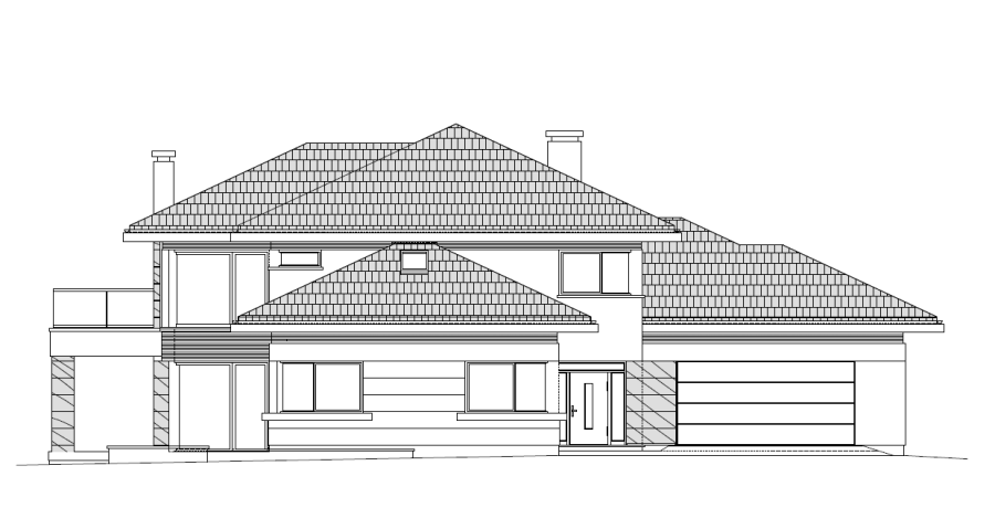 Przeprojektowanie tylnej części pomieszczenia gospodarczego na gabinet z dostępem od zewnątrz.. Wyrównanie wysokości stropu na piętrze, dzięki czemu dostęp do pralni/suszarni z łazienki.