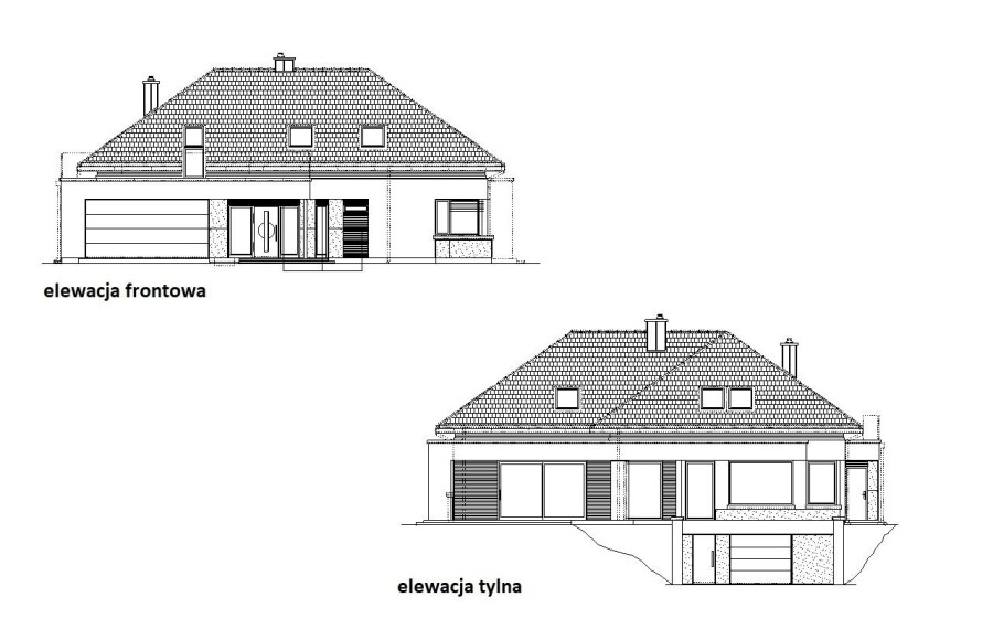 Wariant C z częściowym podpiwniczeniem, zmienionym rozplanowaniem parteru i poddasza, z wyjściem na taras nad garażem.