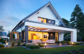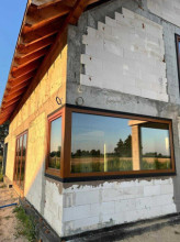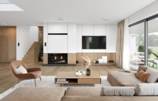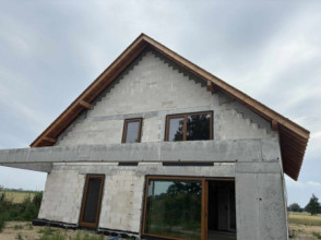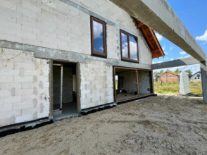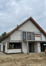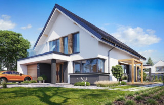Projekt domu Amber 3 jest to projekt parterowego domu jednorodzinnego z poddaszem użytkowym, z serii „Amber” – projekt Amber 3. Budynek zaprojektowano na prostokątnym rzucie, przykrytym dwuspadowym dachem. Prosta bryła domu została urozmaicona dobudowanym garażem i zadaszeniem nad podestem wejściowym od frontu, oraz dużym zadaszeniem nad tarasem od strony ogrodowej. Architektura domu łączy w sobie prostotę formy, z atrakcyjnym detalem i dobrze dobranymi materiałami wykończeniowymi.Tradycyjna sylwetka budynku połączona została tutaj z dużymi przeszkleniami i modnymi kontrastowymi okładzinami ścian, dodającymi „Amberowi” dynamiki i nowoczesnego sznytu.Kształt budynku i układ okien pozwala na wybudowanie go na dość wąskiej parceli. Wnętrze podzielone zostało na część dzienną i gospodarczą na parterze, oraz pokoje sypialne na poddaszu. Do środka wchodzimy reprezentacyjnymi drzwiami frontowymi, przez przedsionek z szatnią, do holu i pokoju dziennego. Znajdująca się od frontu domu kuchnia z wyspą i spiżarnią stanowi dopełnienie pokoju dziennego. W salonie wydzielono jadalnię z otwarciem przestrzennym na antresolę na poddaszu, oraz część wypoczynkową ze ścianą telewizyjno-kominkową i pięknymi szerokimi drzwiami balkonowymi na zadaszony taras. Na parterze zaprojektowano dodatkowy pokój z łazienką, oraz garaż z kotłownią. Poddasze użytkowe to cztery pokoje sypialnie z dwiema łazienkami, w tym oddzielny apartament rodziców z własną łazienką i garderobą. Dzięki wysokim ścianom kolankowym pokoje na poddaszu mają małe skosy i przestrzeń podłóg można wykorzystać niemal w całości. W projekcie zastosowano nowoczesne materiały i technologie, energooszczędne instalacje i dobre izolacje przegród. Dzięki temu koszt późniejszej eksploatacji budynku będzie niski. Dom ma prostą konstrukcję i nie jest skomplikowany w budowie. „ Amber 3” to dobra propozycja dla Inwestorów planujących budowę średniej wielkości domu jednorodzinnego z poddaszem użytkowym, pasującego na wąską parcelę. Domu o rozsądnej wielkości, atrakcyjnym wyglądzie i funkcjonalnym wnętrzu. Zapraszamy do zapoznania się ze wszystkimi domami z tej serii: https://www.mgprojekt.com.pl/amber, https://www.mgprojekt.com.pl/amber-2, https://www.mgprojekt.com.pl/amber-3, https://www.mgprojekt.com.pl/amber-4.