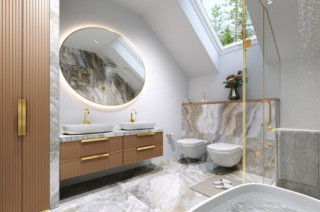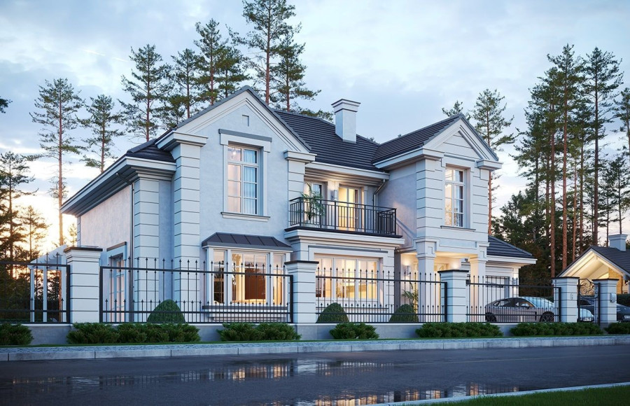 Projekt domu Willa Siedziba 3 to nowa odsłona cieszącego się uznaniem projektu Willa Siedziba. Nowy wariant to zmniejszony o 50 m² dom, ze zwężoną o 5 metrów szerokością bryły, dzięki czemu budynek zmieści się na węższej 26-metrowej działce. Willa Siedziba 3 to reprezentacyjna miejska willa, nawiązująca swoją formą i stylistyką do wczesno dwudziestowiecznych rezydencji, jakie możemy spotkać do dziś w prestiżowych willowych dzielnicach większych miast. Dom ma powierzchnię użytkową wynoszącą ca 240 m² i jest przeznaczony dla 4- 6-osobowej rodziny. Bryłę budynku zaprojektowano na prostokątnym planie i składa się z dwóch części - wyżej mieszkalnej, przykrytej czterospadowym dachem, oraz niższej bryły garażu. Dach budynku został osadzony na wysokości umożliwiającej interpretację tego budynku jako dom z poddaszem użytkowym. Główna bryła urozmaicona została czterema masywnymi lukarnami, skrywającymi w swojej szerokości pokoje górnej kondygnacji. Od strony elewacji fontowej willi mamy reprezentacyjne wejście z szerokimi drzwiami z naświetlami. Następnie dwa wykusze - kuchenny i jadalni - oba o innej formie, ale harmonizujące ze sobą. Dalej balkon z ozdobną balustradą, dostępny z holu-saloniku piętra, oraz wspomniane dwie lukarny pokoi piętra spinające całą kompozycję bryły. Trochę wycofany garaż nie narzuca się i pozwala znaleźć miejsce na swobodne parkowanie aut przed drzwiami garażowymi. Strona ogrodowa to jeszcze bardziej urozmaicona fasada. Mamy tutaj wystające lukarny pięter, między nimi dwupiętrowe okno salonu, balkon sypialni master, oraz przepiękną pergolę przykrywającą częściowo taras. Wnętrze domu na parterze to przede wszystkim duża przestrzeń dzienna połączonych pomieszczeń salonu, kuchni i jadalni, tworząca razem ponad 80-metrową powierzchnię. Dodatkowym urozmaiceniem jest tutaj otwarcie przestrzenne - pustka nad salonem, połączona z antresolą piętra, gdzie znajduje się hol-salonik. Do domu wchodzimy przez wygodny przedsionek z szatnią, do holu z reprezentacyjnymi schodami, a dalej do przestrzeni dziennej. Dodatkowe pomieszczenia na parterze to oczywiście duży garaż z pomieszczeniem technicznym, oraz oddzielony akustycznie gabinet. Na piętrze zaprojektowano 4 pokoje sypialne, w tym apartament master z oddzielną łazienką i garderobami. Willa Siedziba 3 została zaprojektowana jako dom energooszczędny, z dobrej jakości materiałów, z dobrą izolacją termiczną i z nowoczesnymi instalacjami. Budynek mimo skomplikowanej formy wykonano w tradycyjnej technologii, z rozwiązaniami spotykanymi na każdej budowie. Budowa budynku nie powinna być problematyczna dla fachowego wykonawcy. Willa Siedziba 3 to propozycja dla Inwestorów marzących o budowie prawdziwego pełnokrwistego domu o odpowiedniej skali, dającego przestrzeń do komfortowego życia, marzących o realizacji projektu nietuzinkowego o ponadczasowej stylistyce. Zapraszamy !