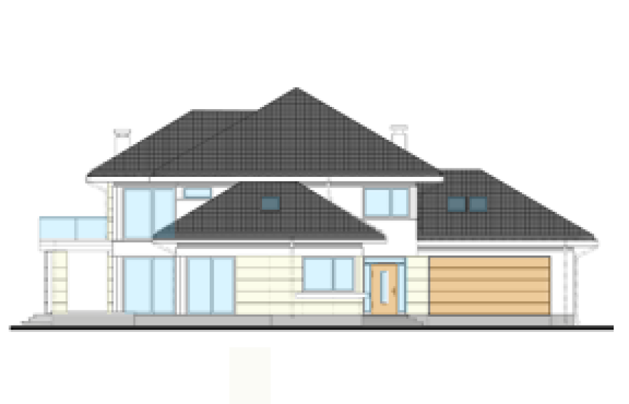 Wariant projektu Dom z Widokiem 3 N, ze zmienionym kątem nachylenia dachu, zmienionym układem pomieszczeń, pralnia nad garażem.