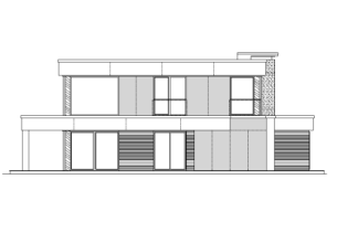 Zmiany zewnętrzne: Dach płaski. Zmiany wewnątrz: antresola nad salonem, zmiany programu użytkowego na piętrze. Podwyższenie piętra.